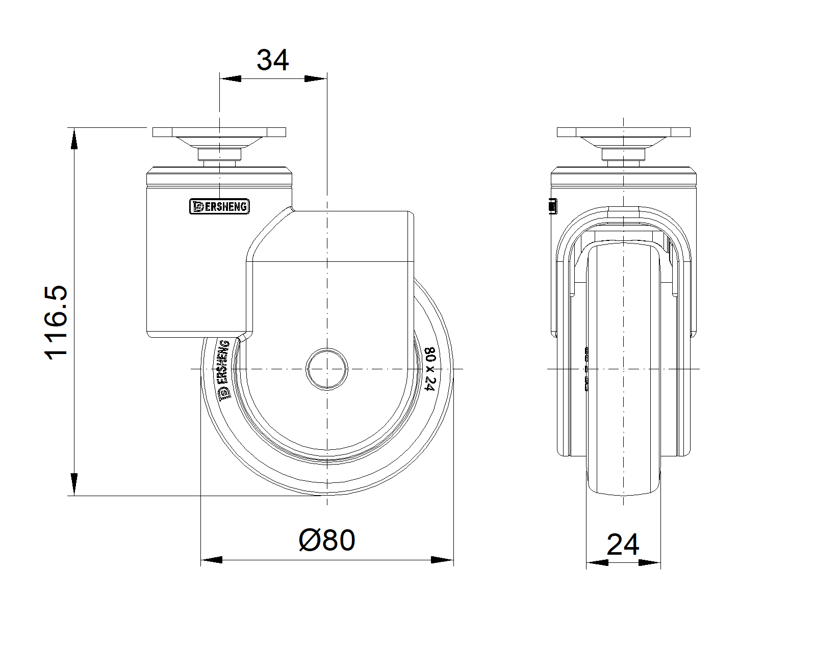| PPR Bánh xe (đen) Đường kính bánh xe × Chiều rộng bánh xe 80 x 24mm |