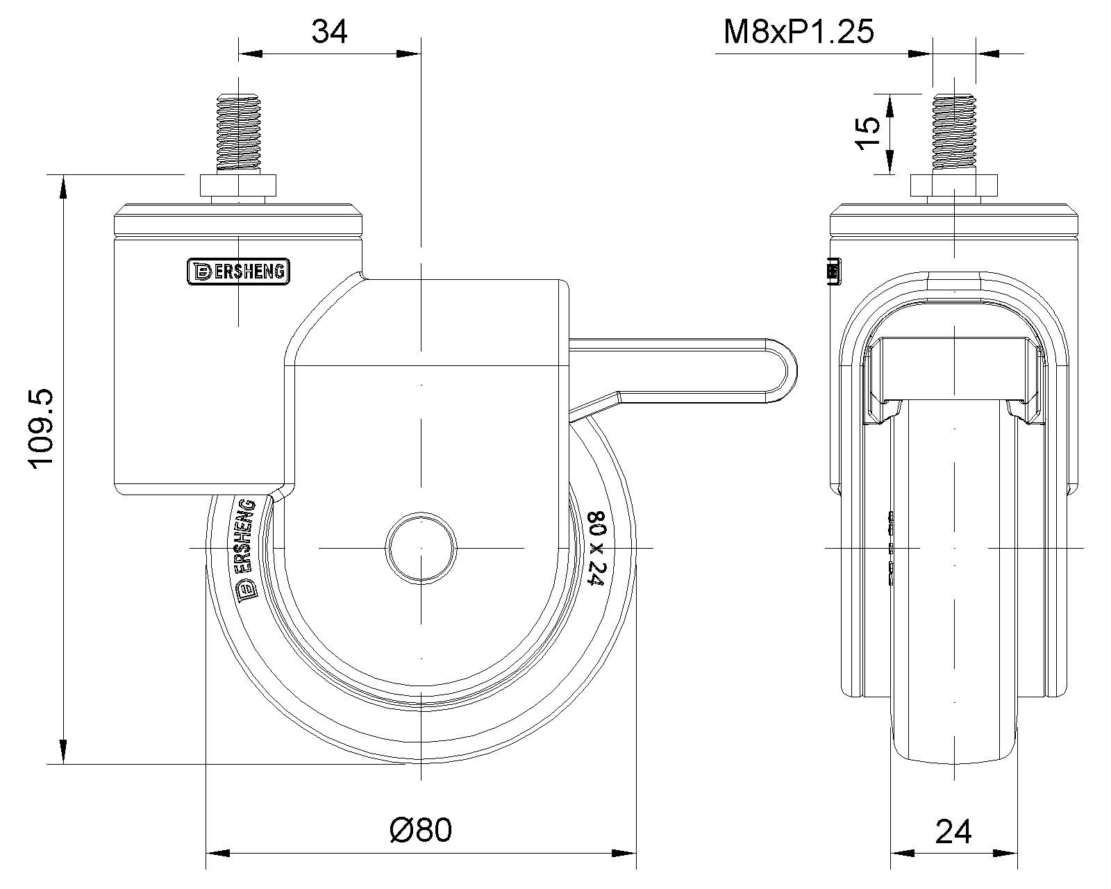 | PPR Bánh xe (đen) Đường kính bánh xe × Chiều rộng bánh xe 80 x 24mm |   |   | ||||