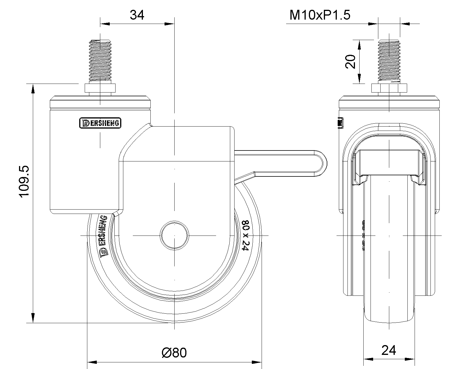| PPR Bánh xe (đen) Đường kính bánh xe × Chiều rộng bánh xe 80 x 24mm |   |   | ||||
