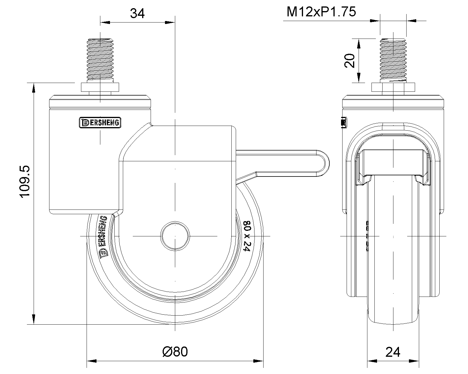 | PPR Bánh xe (đen) Đường kính bánh xe × Chiều rộng bánh xe 80 x 24mm |   |   | ||||