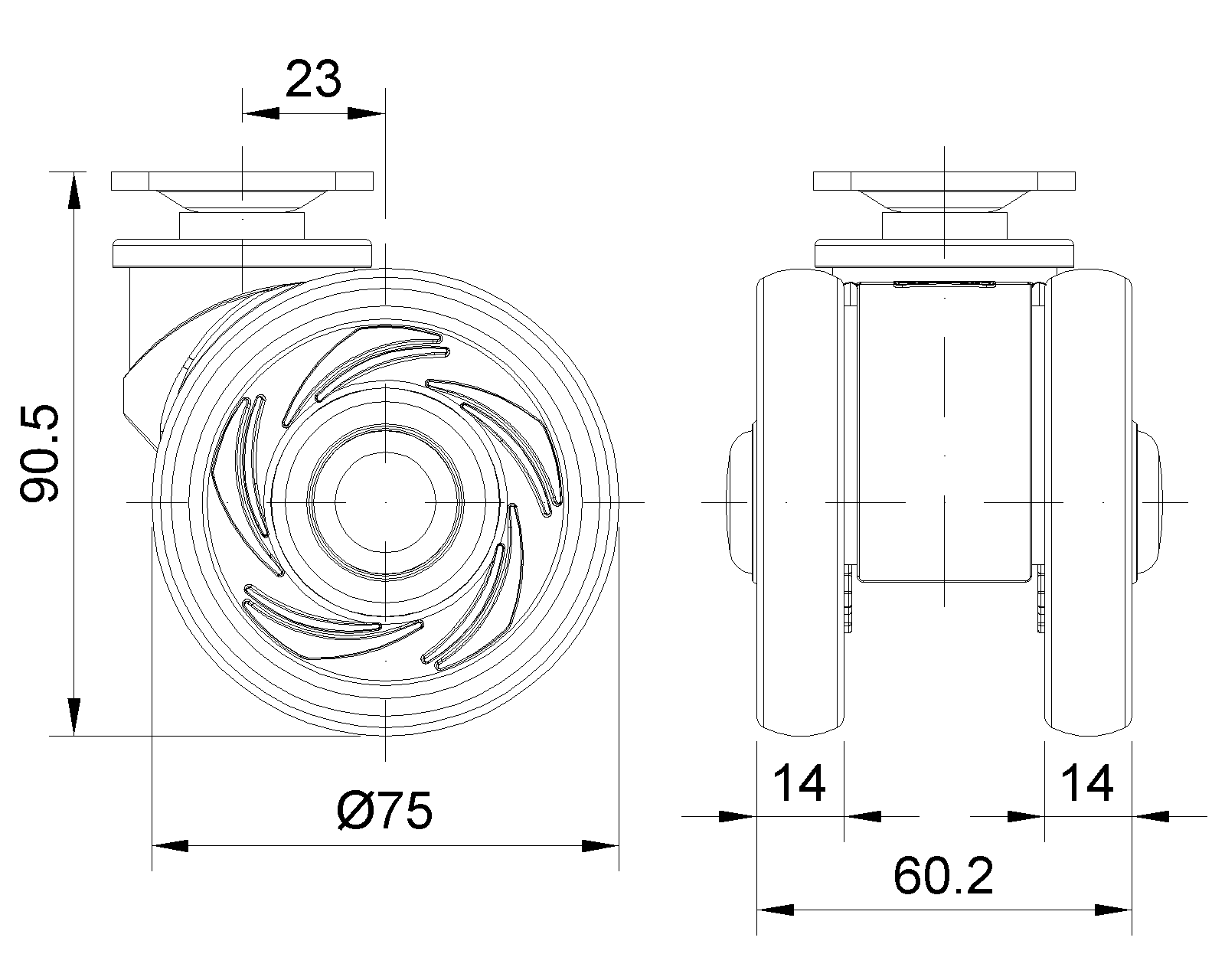 | Bánh xe xoay, đế 32x32 Khung màu trắng với lớp gia cố polyamide Chống gỉ, chống ăn mòn, thẩm mỹ, tiết kiệm và linh hoạt Lõi bánh xe bằng polypropylen chống va đập với gai lốp bằng chất đàn hồi nhiệt dẻo (TPR) Vòng bi bánh xe màu trắng xám đậm: vòng bi bi chính xác |   | |||||