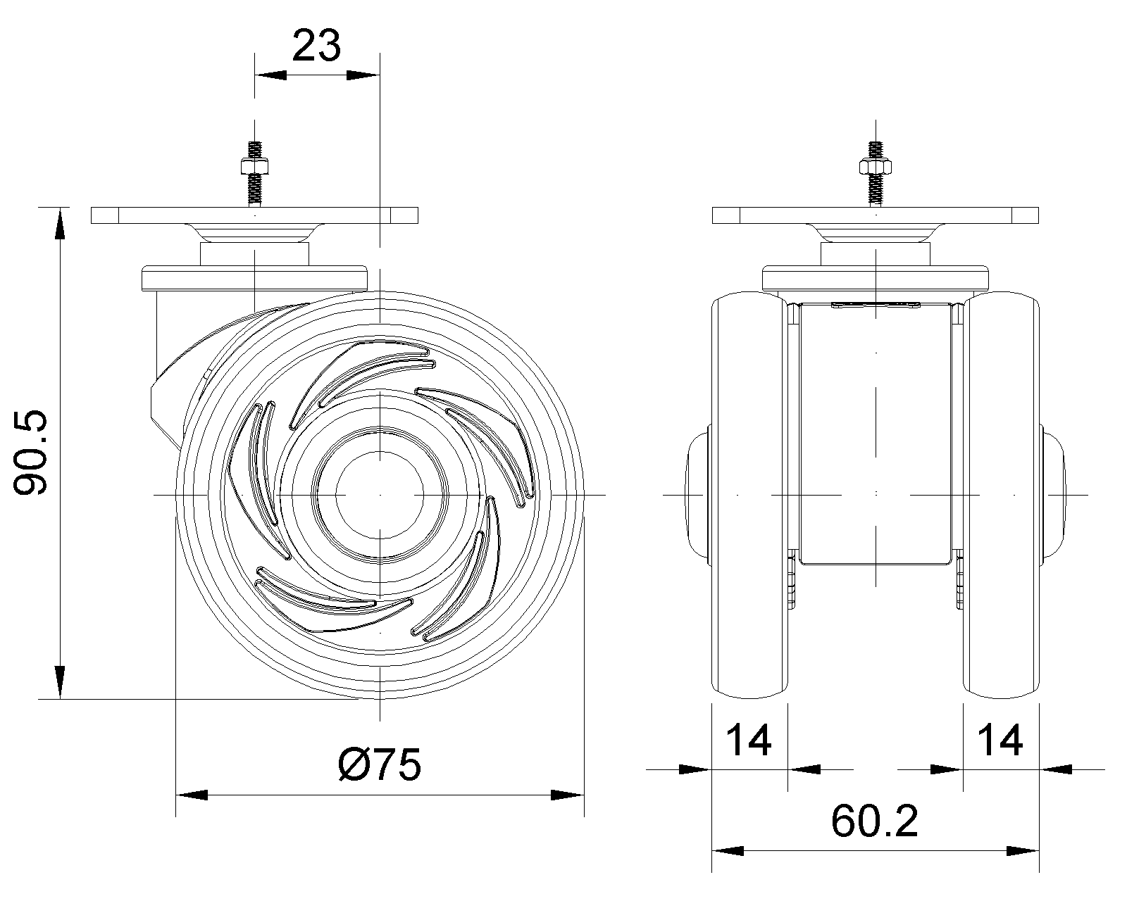 | Bánh xe xoay với đế lỗ góc 42,5 x 42,5 mm Khung màu trắng với lớp gia cố polyamide Chống gỉ, chống ăn mòn, thẩm mỹ, tiết kiệm và linh hoạt Lõi bánh xe bằng polypropylen chống va đập với gai nhựa nhiệt dẻo đàn hồi (TPR) Vòng bi bánh xe màu trắng xám đậm: vòng bi bi chính xác |   | |||||