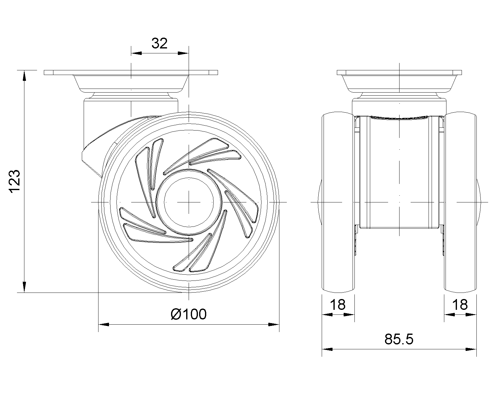 | Bánh xe xoay với đế lỗ góc 75x45 Khung màu trắng với lớp gia cố polyamide Chống gỉ, chống ăn mòn, thẩm mỹ, tiết kiệm và linh hoạt Lõi bánh xe bằng polypropylene chống va đập với gai nhựa nhiệt dẻo đàn hồi (TPR) Vòng bi bánh xe màu trắng xám đậm: vòng bi bi chính xác |   | |||||