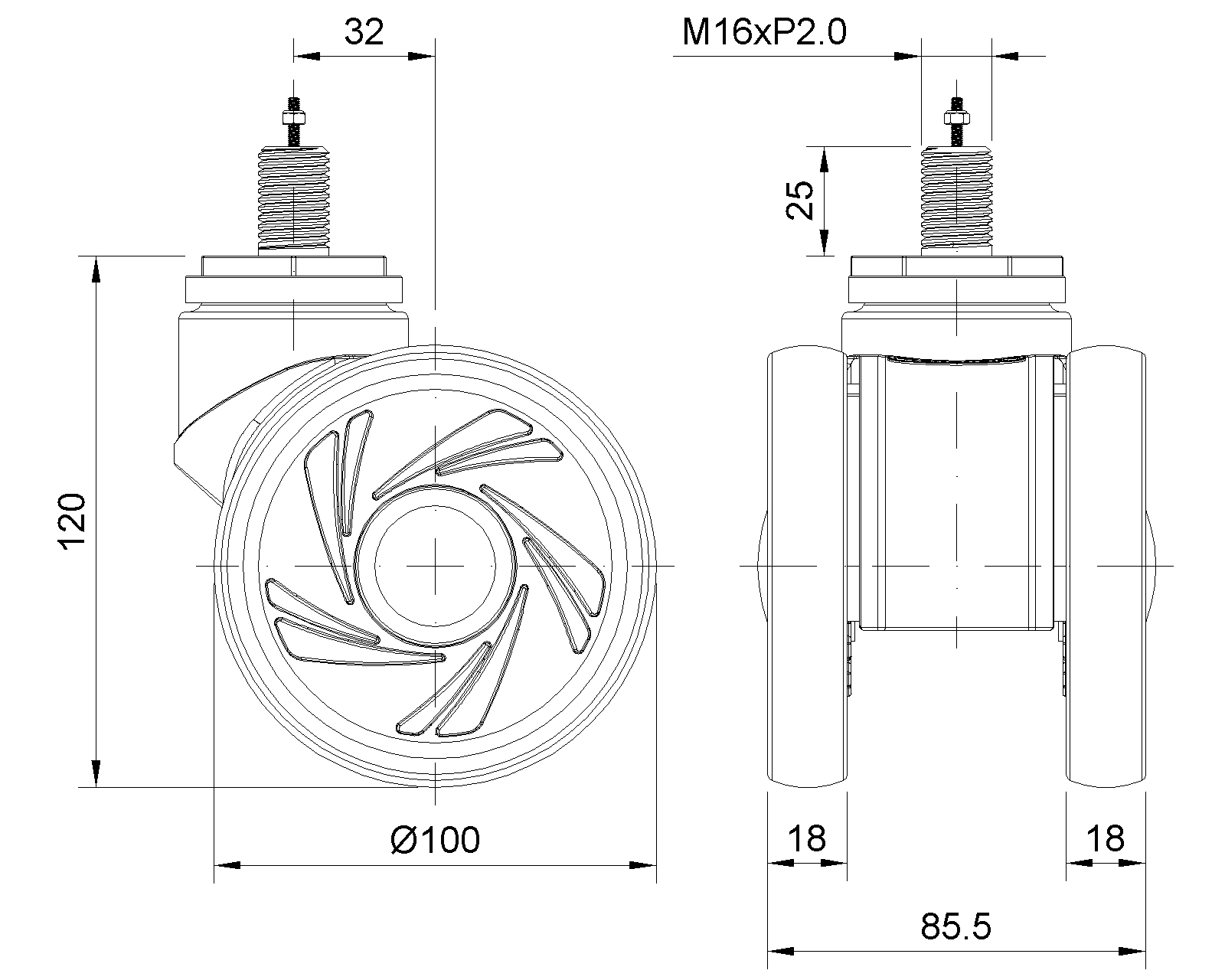 | Bánh xe xoay, ren M12x25 Khung màu trắng với lớp gia cố polyamide Chống gỉ, chống ăn mòn, thẩm mỹ, tiết kiệm và linh hoạt Lõi bánh xe bằng polypropylene chống va đập, gai lốp bằng nhựa nhiệt dẻo đàn hồi (TPR) Vòng bi bánh xe màu trắng xám đậm—vòng bi chính xác |   | |||||