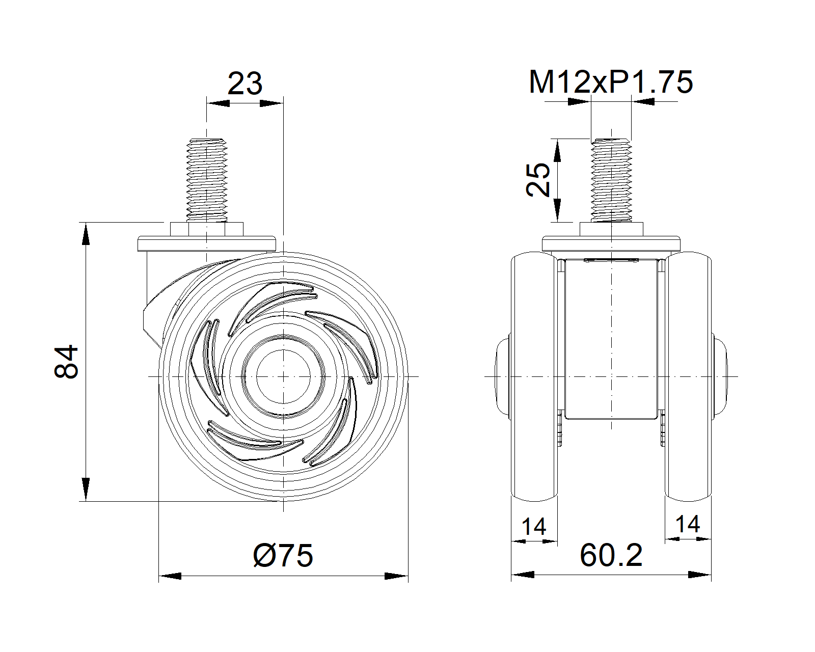 | Bánh xe có phanh kép và hệ thống khóa, ren M12x25 Khung màu trắng với lớp gia cố polyamide Chống gỉ, chống ăn mòn, thẩm mỹ, tiết kiệm và linh hoạt Lõi bánh xe bằng polypropylen chống va đập với gai lốp bằng chất liệu đàn hồi nhiệt dẻo (TPR) Vòng bi bánh xe màu trắng xám đậm—vòng bi chính xác |   | |||||