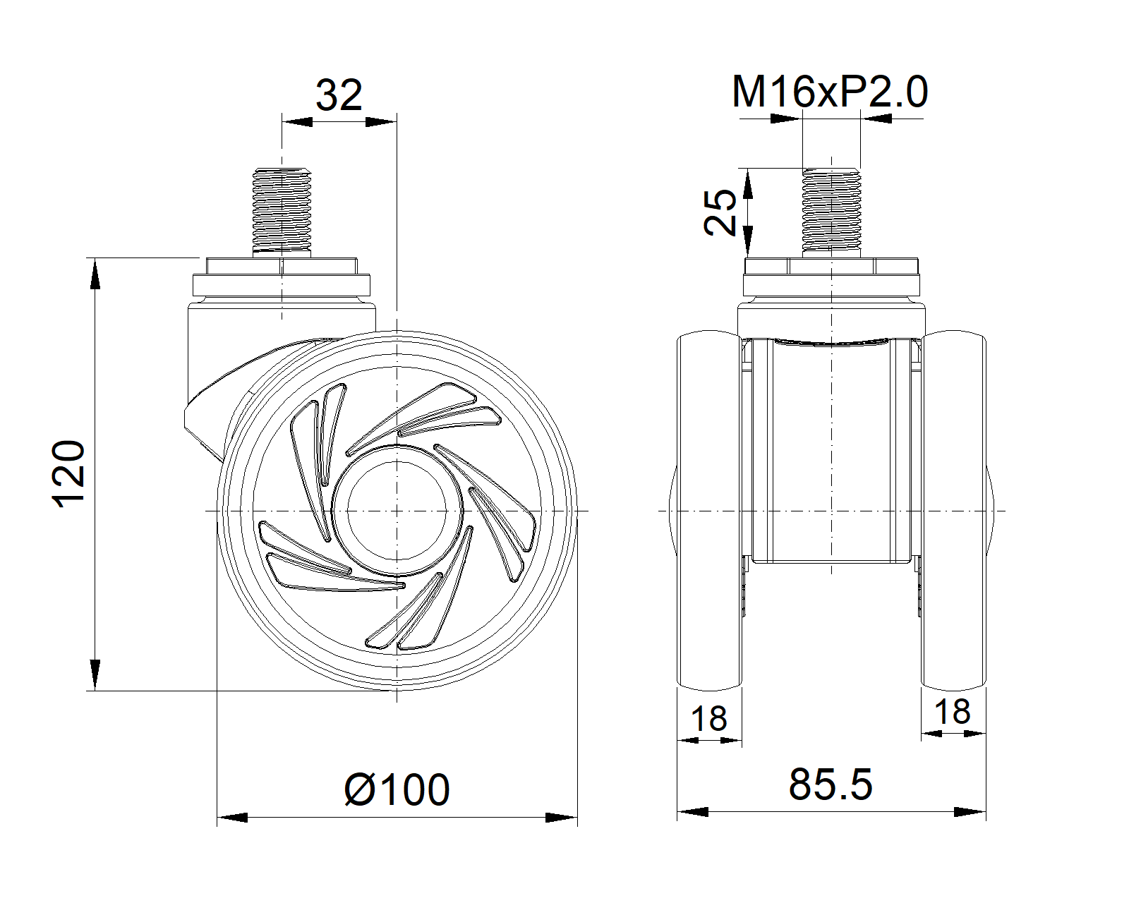 | Bánh xe có phanh kép và hệ thống khóa, ren M16x25 Khung màu trắng với lớp gia cố polyamide Chống gỉ, chống ăn mòn, thẩm mỹ, tiết kiệm và linh hoạt Lõi bánh xe bằng polypropylen chống va đập với gai lốp bằng nhựa nhiệt dẻo đàn hồi (TPR) Vòng bi bánh xe màu trắng xám đậm—vòng bi chính xác |   | |||||