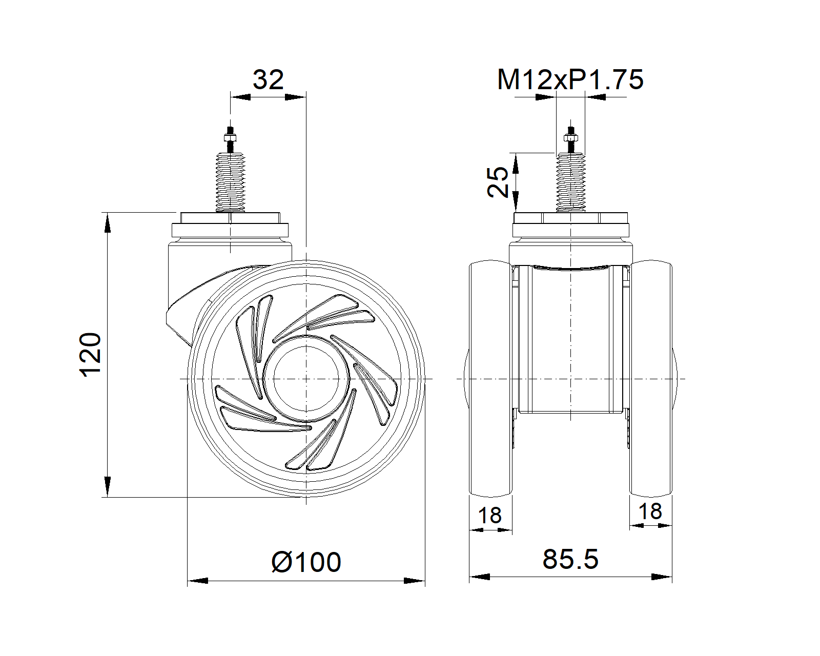 | Bánh xe có phanh kép và hệ thống khóa, ren M12x25 Khung màu trắng với lớp gia cố polyamide Chống gỉ, chống ăn mòn, thẩm mỹ, tiết kiệm và linh hoạt Lõi bánh xe bằng polypropylen chống va đập với gai lốp bằng chất đàn hồi nhiệt dẻo (TPR) Vòng bi bánh xe màu trắng xám nhạt—vòng bi chính xác |   | |||||