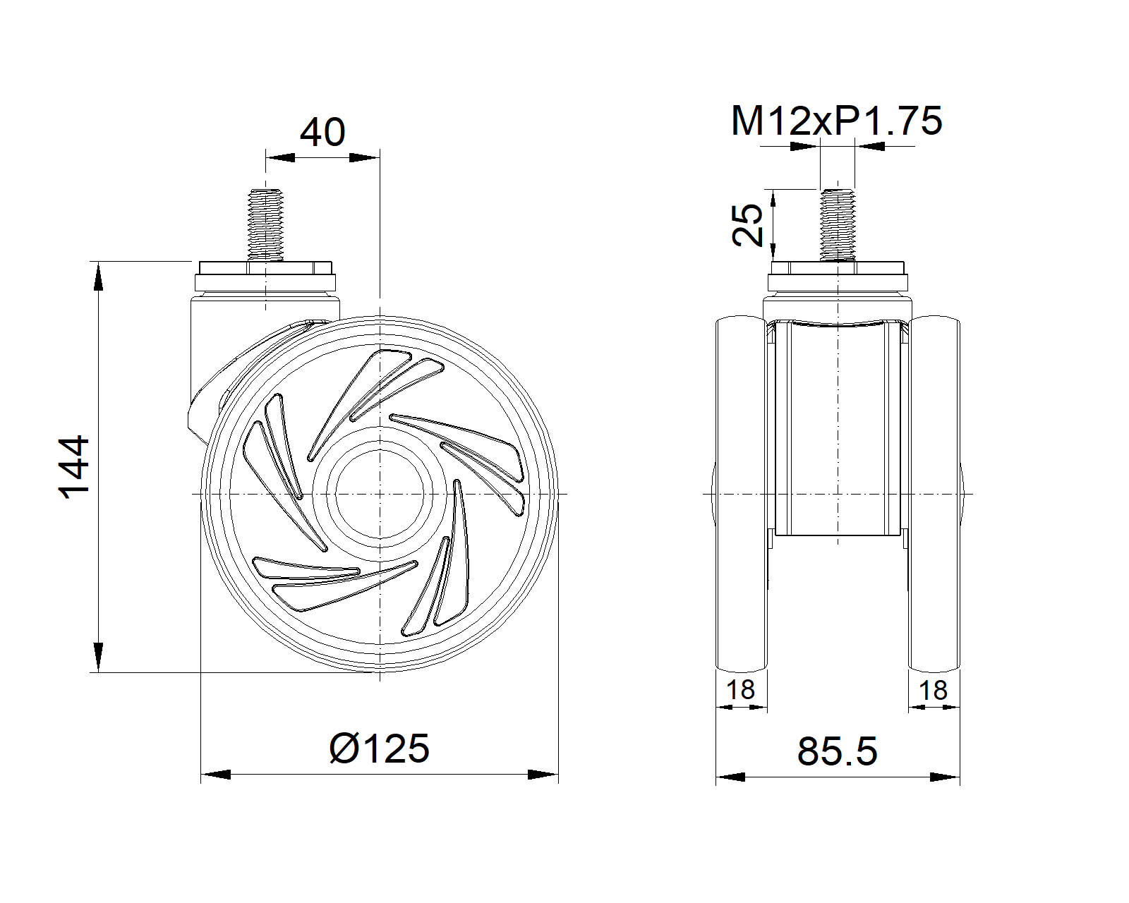 | Bánh xe có phanh kép và hệ thống khóa, ren M12x25 Khung màu trắng với lớp gia cố polyamide Chống gỉ, chống ăn mòn, thẩm mỹ, tiết kiệm và linh hoạt Lõi bánh xe bằng polypropylen chống va đập với gai lốp bằng chất liệu đàn hồi nhiệt dẻo (TPR) Vòng bi bánh xe màu trắng xám đậm—vòng bi chính xác |   | |||||