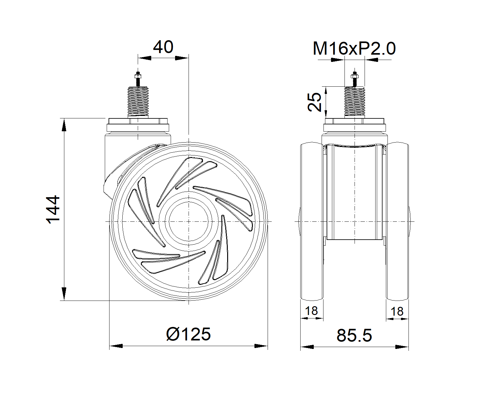 | Bánh xe có phanh kép và hệ thống khóa, ren M16x25 Khung màu trắng với lớp gia cố polyamide Chống gỉ, chống ăn mòn, thẩm mỹ, tiết kiệm và linh hoạt Lõi bánh xe bằng polypropylen chống va đập, gai lốp bằng nhựa nhiệt dẻo đàn hồi (TPR) Vòng bi bánh xe màu trắng xám nhạt—vòng bi chính xác |   | |||||
