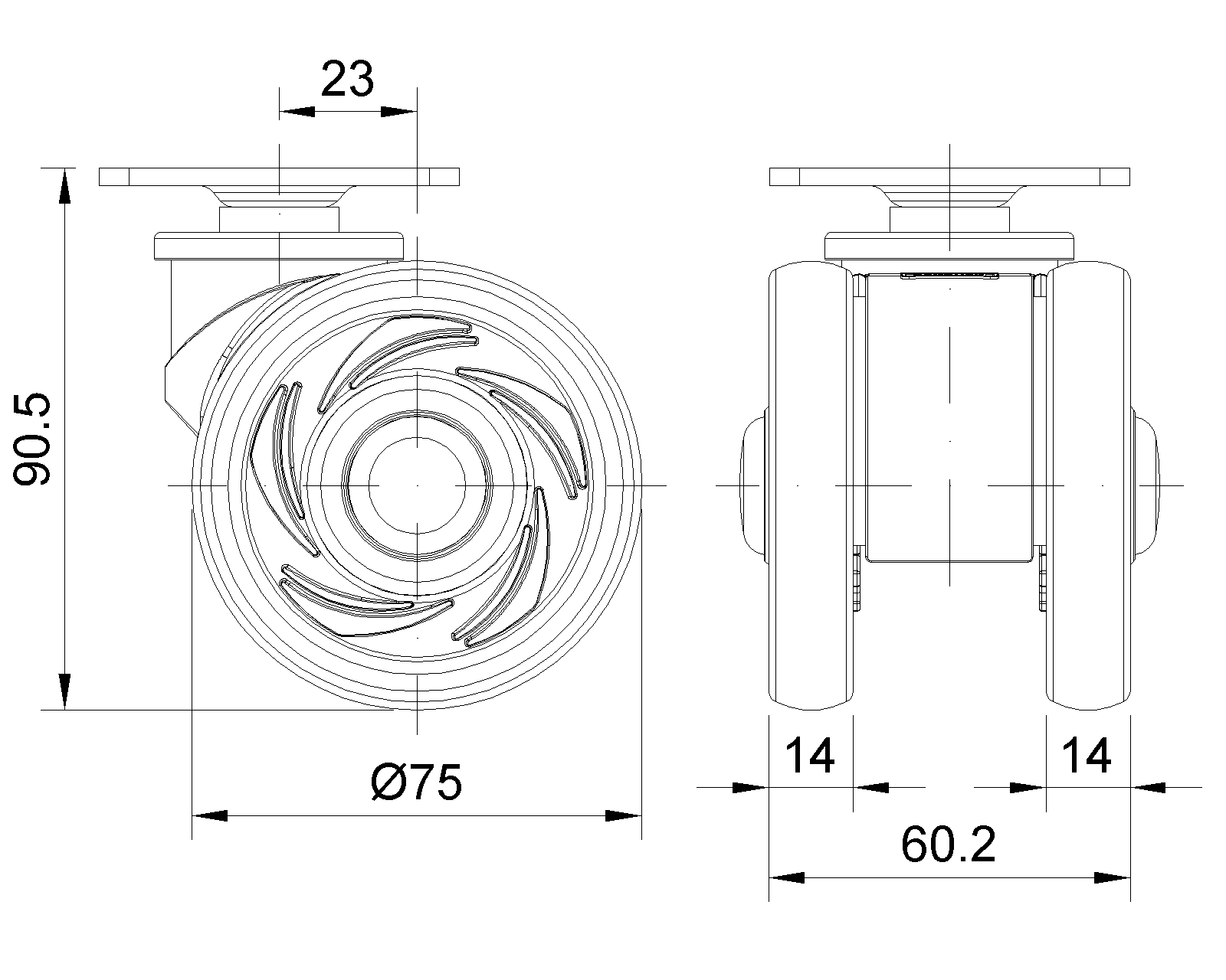| Bánh xe cố định với đế lỗ góc 42,5 x 42,5 mm Khung màu trắng với lớp gia cố polyamide Chống gỉ, chống ăn mòn, thẩm mỹ, tiết kiệm và linh hoạt Lõi bánh xe bằng polypropylen chống va đập với gai nhựa nhiệt dẻo đàn hồi (TPR) Vòng bi bánh xe màu trắng xám đậm: vòng bi bi chính xác |   | |||||