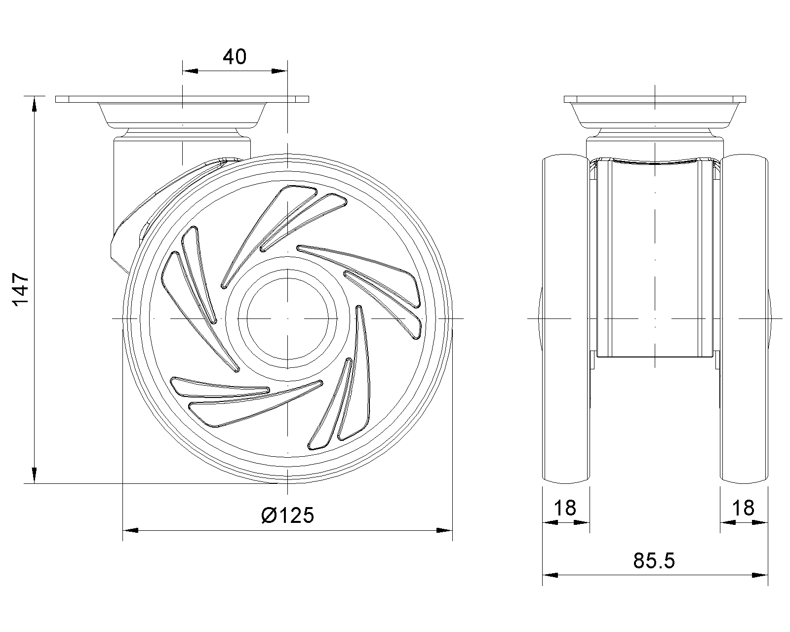 | Bánh xe xoay với đế lỗ góc 75x45 Khung màu trắng với lớp gia cố polyamide Chống gỉ, chống ăn mòn, thẩm mỹ, tiết kiệm và linh hoạt Lõi bánh xe bằng polypropylene chống va đập với gai nhựa nhiệt dẻo đàn hồi (TPR) Vòng bi bánh xe màu trắng xám đậm: vòng bi bi chính xác |   | |||||