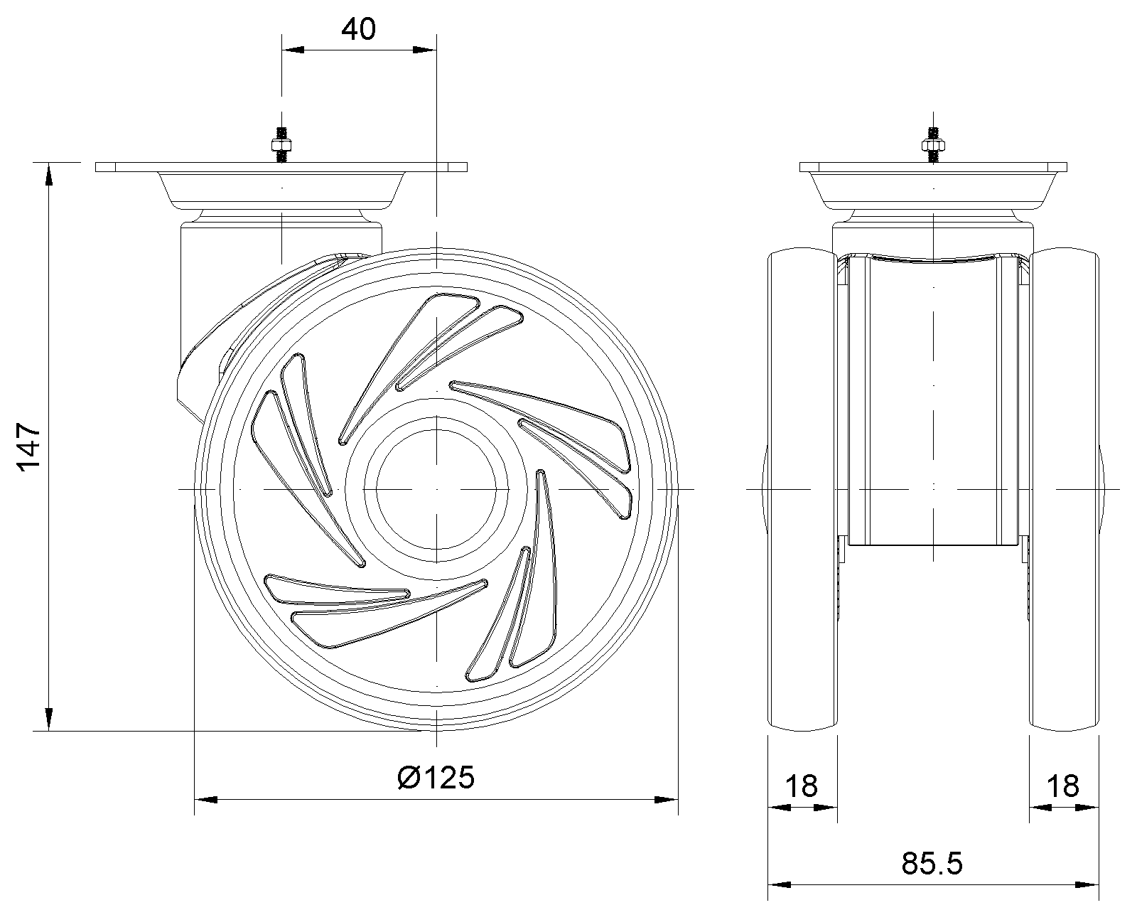 | Bánh xe xoay với đế lỗ góc 75x45 Khung màu trắng với lớp gia cố polyamide Chống gỉ, chống ăn mòn, thẩm mỹ, tiết kiệm và linh hoạt Lõi bánh xe bằng polypropylene chống va đập với gai nhựa nhiệt dẻo đàn hồi (TPR) Vòng bi bánh xe màu trắng xám đậm: vòng bi bi chính xác |   | |||||