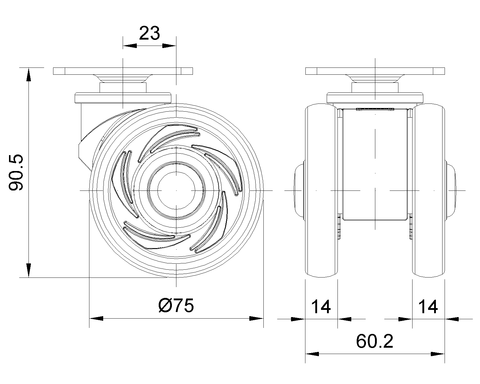 | Bánh xe có hệ thống phanh và khóa cố định, đế lỗ góc 42,5 x 42,5 Khung màu trắng gia cố bằng polyamide Chống gỉ, chống ăn mòn, thẩm mỹ, tiết kiệm và linh hoạt Lõi bánh xe bằng polypropylen chống va đập với gai nhựa nhiệt dẻo đàn hồi (TPR) Vòng bi bánh xe màu trắng xám đậm: vòng bi bi chính xác |   | |||||