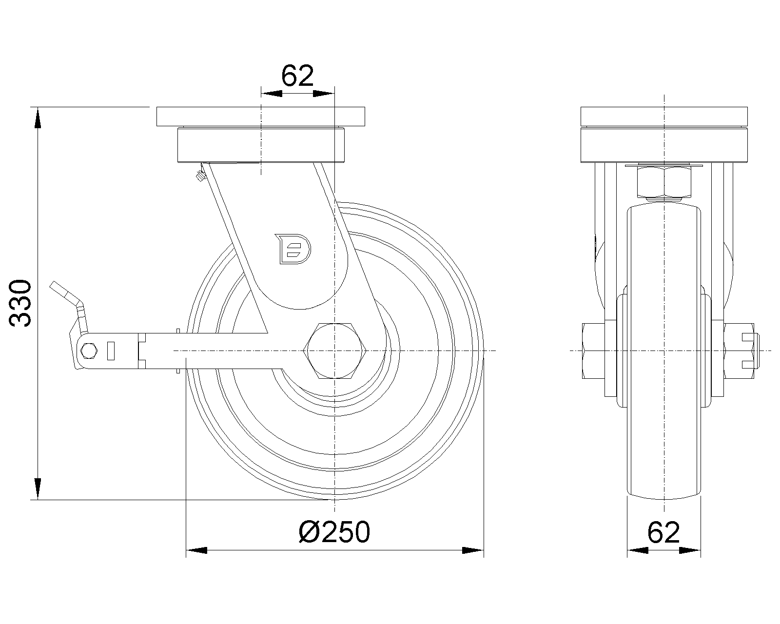 | 后煞式脚轮,焊接钢板架