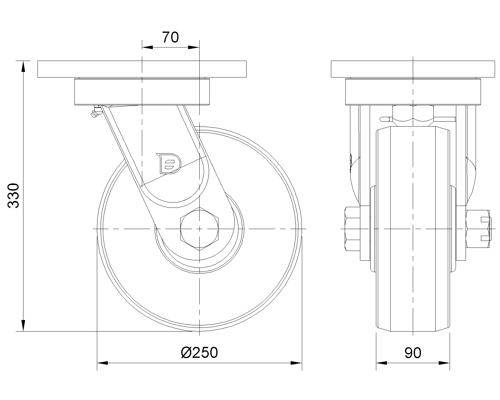 底板式安装装置,孔距210x160 热塑性塑料轮芯、轮面,米白色 轮子轴承—斜珠轴承 |