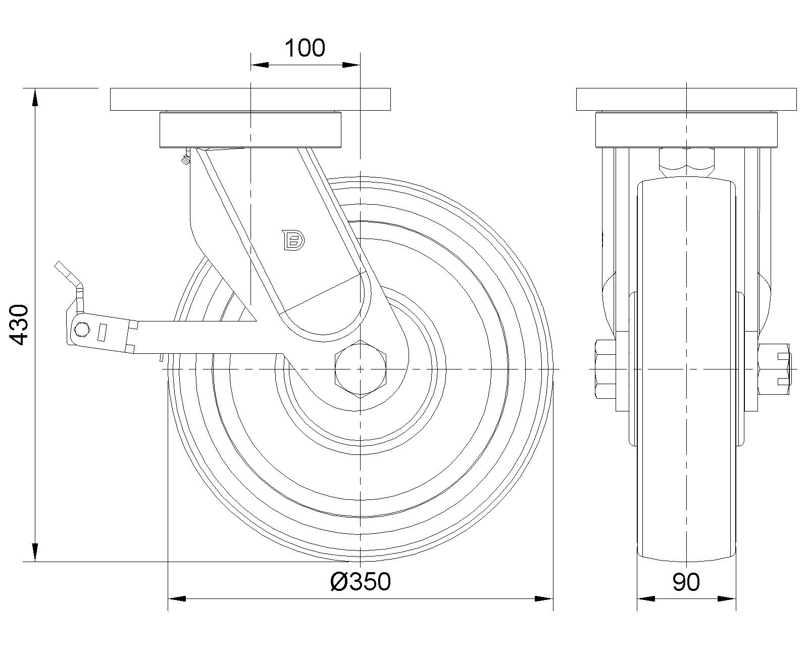 | 后煞式脚轮,焊接钢板架,表面蓝漆