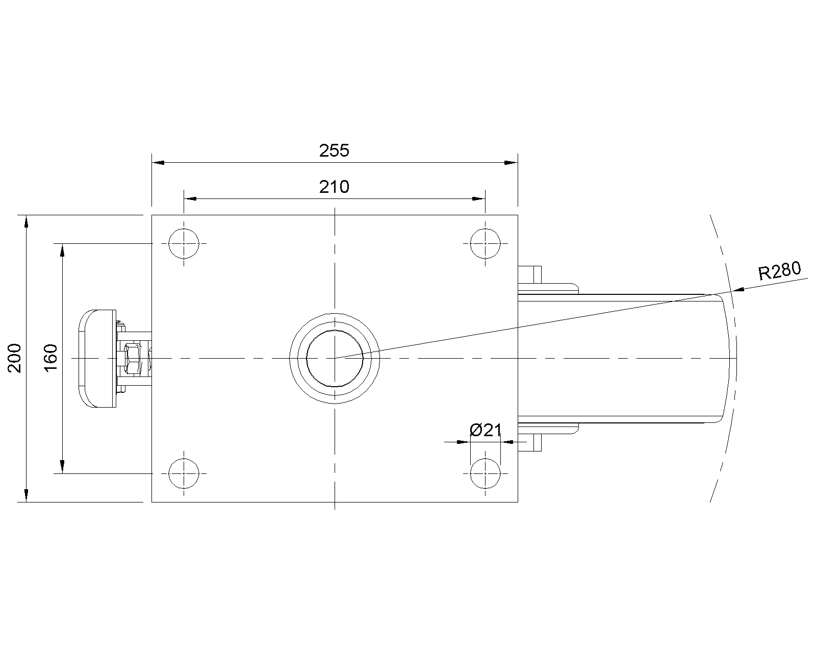底板式安装装置,孔距210x160 铸铁制轮芯,高品质聚氨酯轮面,铣酒红色 轮子轴承—斜珠轴承 |