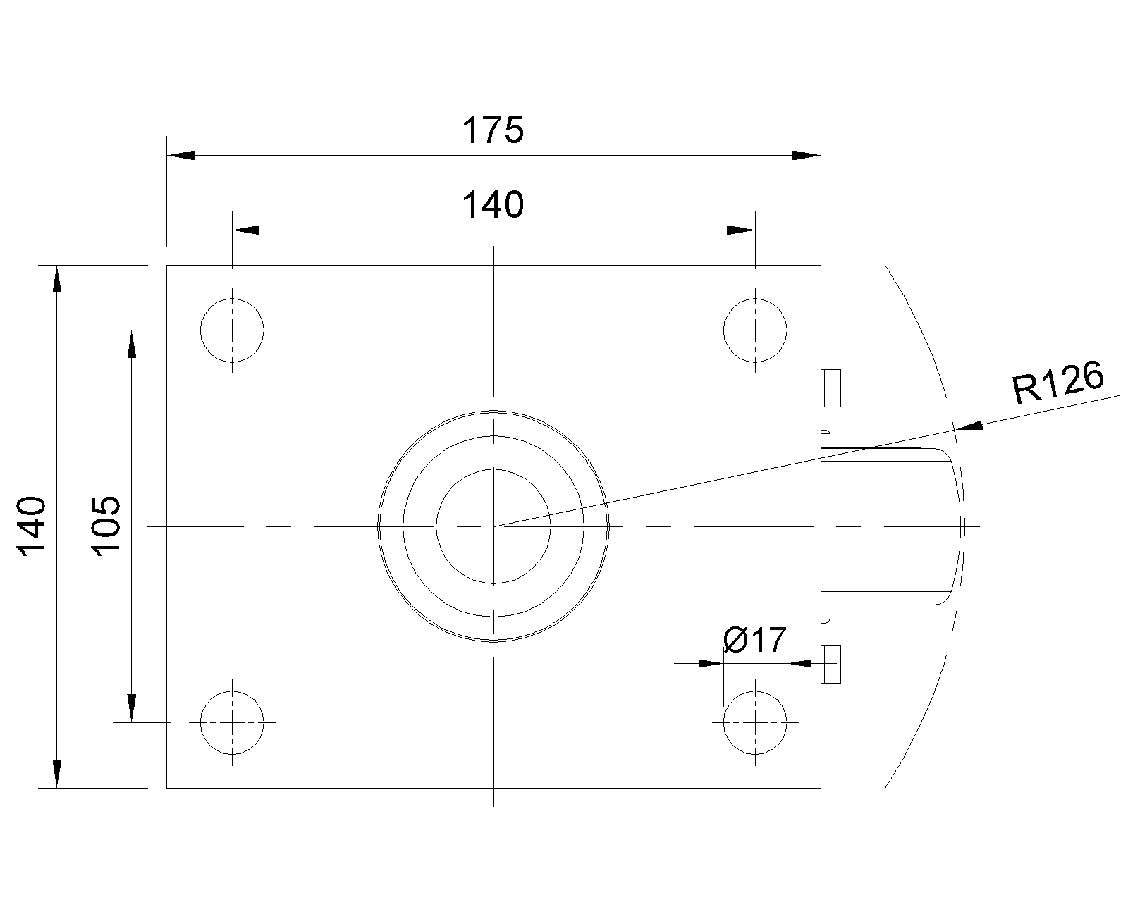 Lắp đế, khoảng cách lỗ 140x105mm Lõi bánh xe bằng gang với gai polyurethane chất lượng cao, phay màu đỏ tía Vòng bi bánh xe: vòng bi góc |