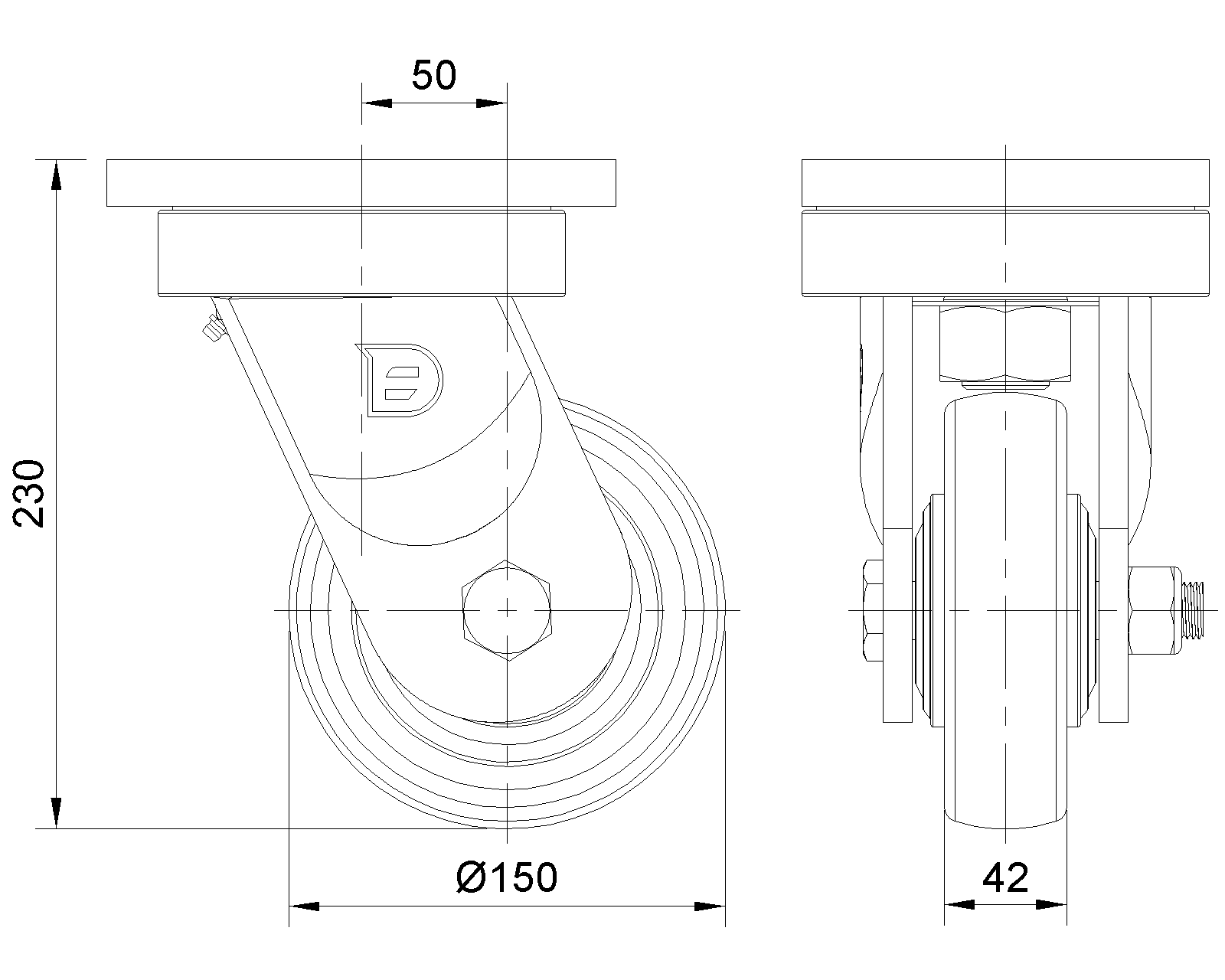 | Bánh xe VXPU (vòng cung đỏ rượu) Đường kính bánh xe × Chiều rộng bánh xe 150 x 42mm |