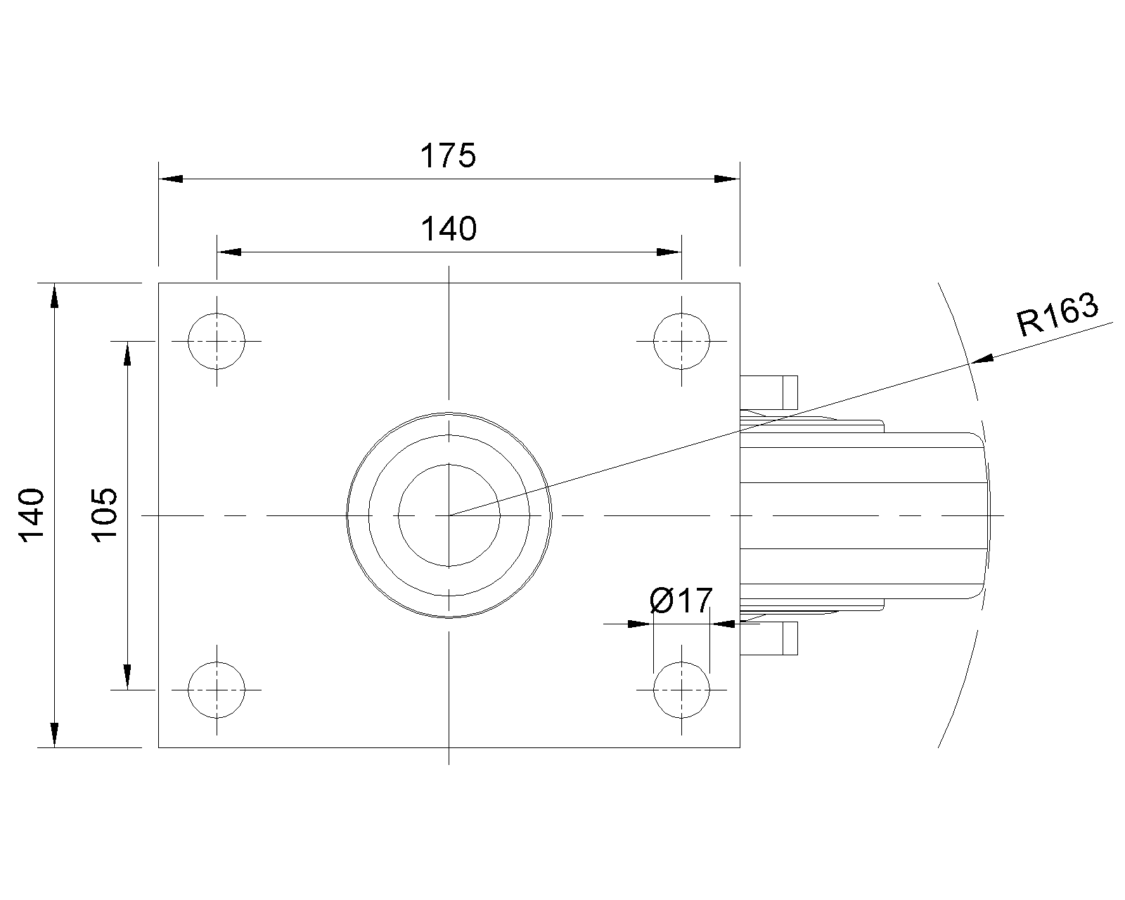 Lắp đế, khoảng cách lỗ 140x105mm Lõi bánh xe và gai bánh xe bằng nhựa nhiệt dẻo, màu trắng ngà Vòng bi bánh xe - vòng bi góc |