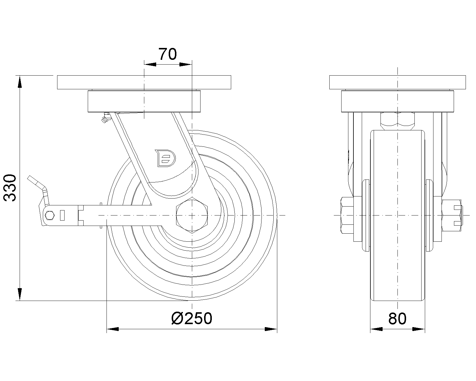 | VQPU Bánh xe (nâu phẳng) Đường kính bánh xe × Chiều rộng bánh xe 250 x 80mm |