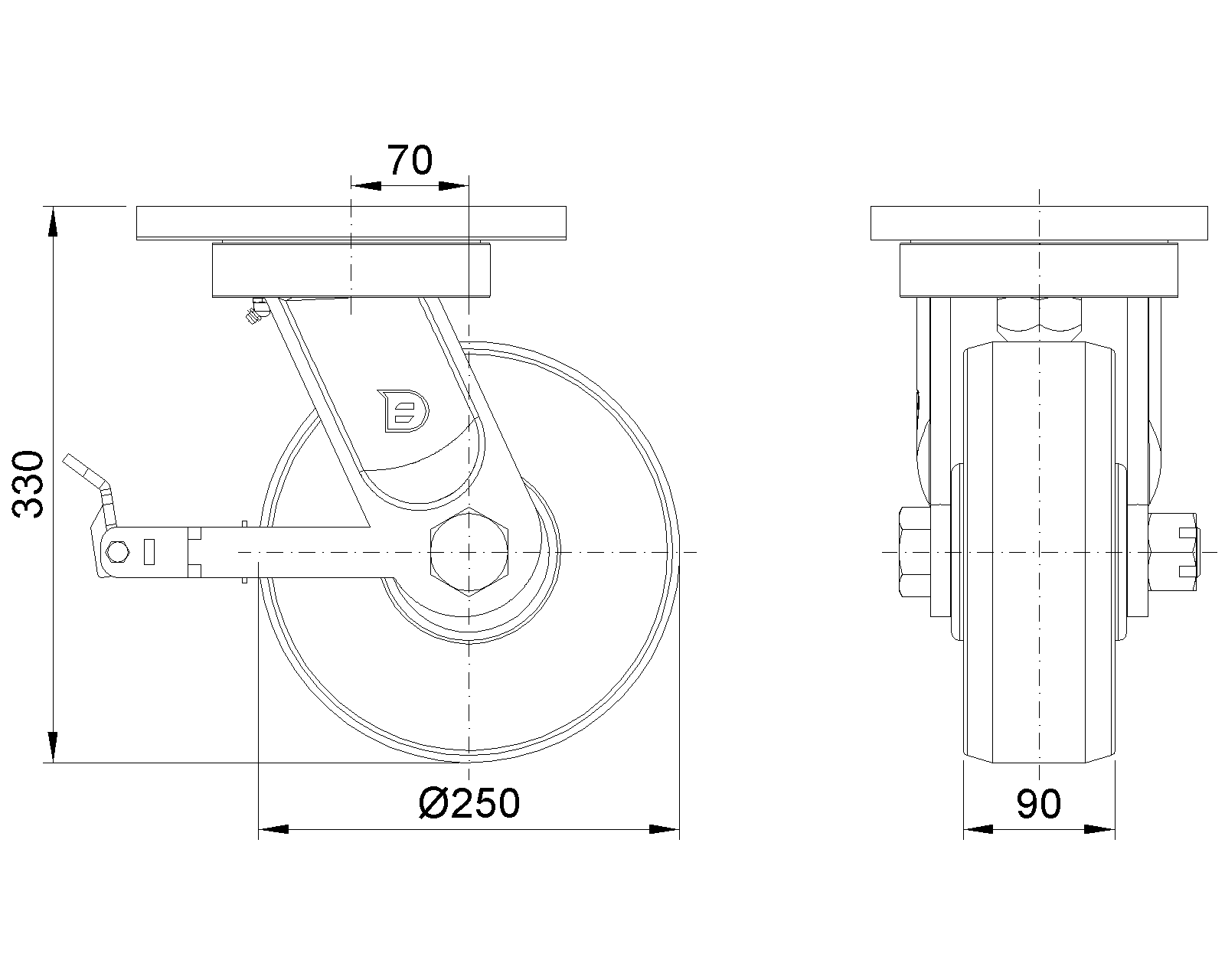 | MC Bánh xe nylon (màu trắng gạo) Đường kính bánh xe × Chiều rộng bánh xe 250 x 90mm |