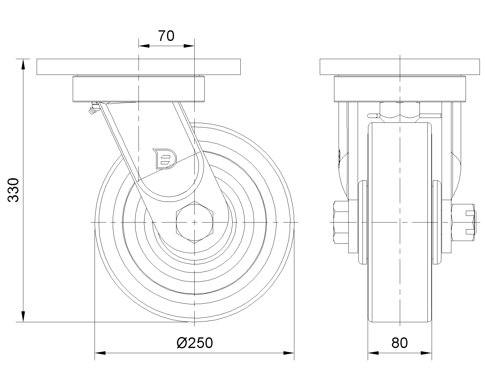 | VQPU Bánh xe (nâu phẳng) Đường kính bánh xe × Chiều rộng bánh xe 250 x 80mm |