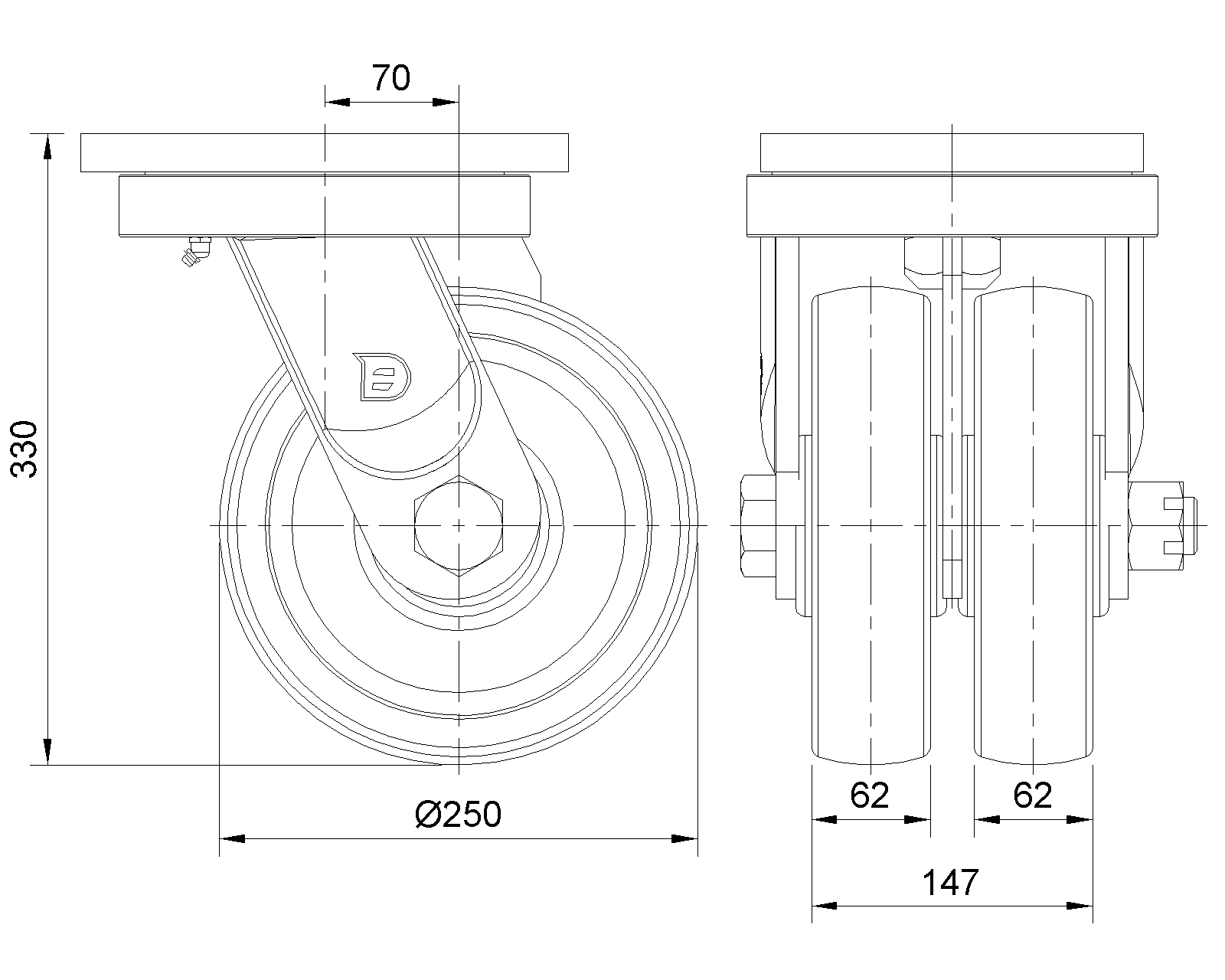 | Bánh xe VQPU (hồ quang nâu) Đường kính bánh xe × Chiều rộng bánh xe 250 x 62mm |