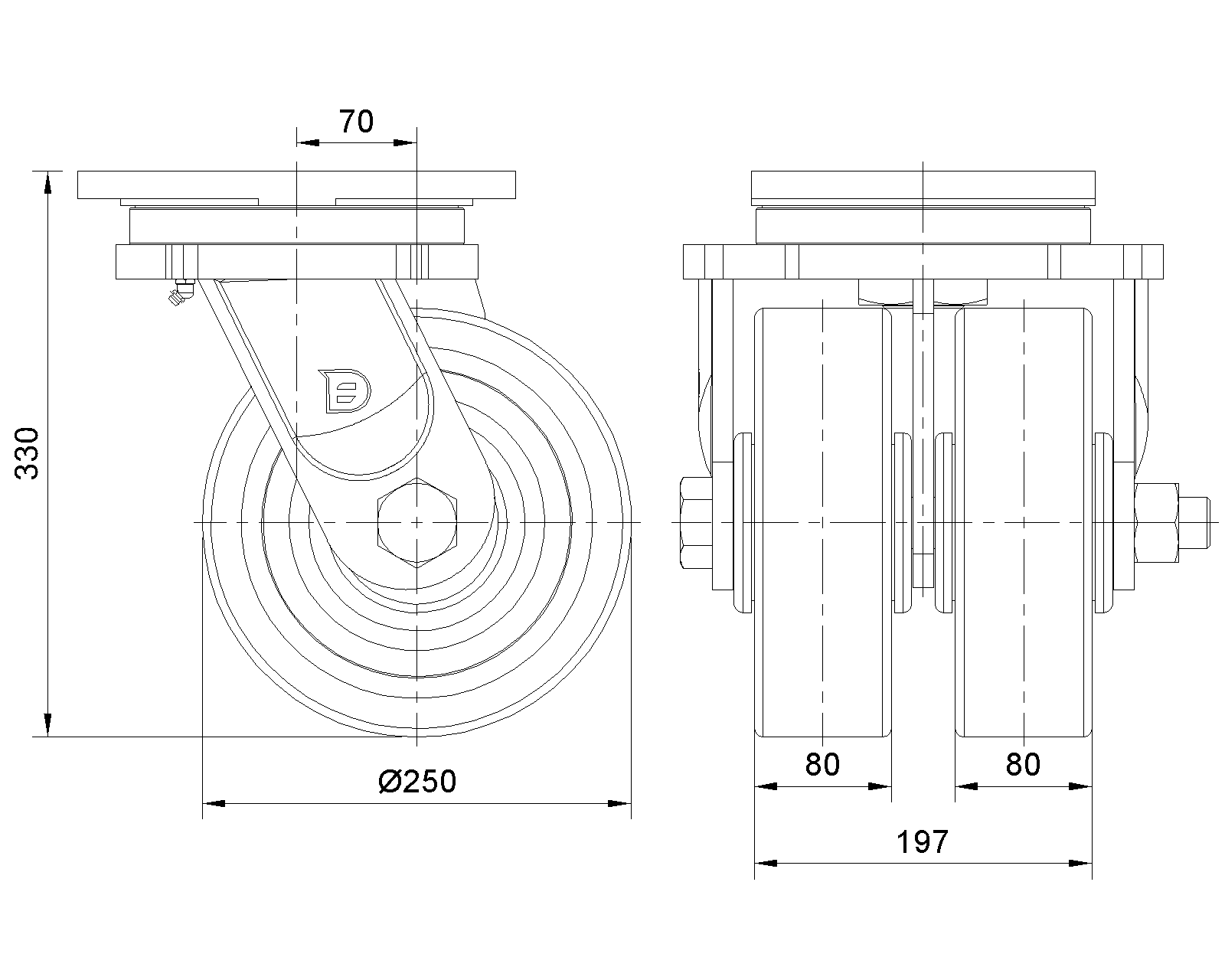| VQPU Bánh xe (nâu phẳng) Đường kính bánh xe × Chiều rộng bánh xe 250 x 80mm |