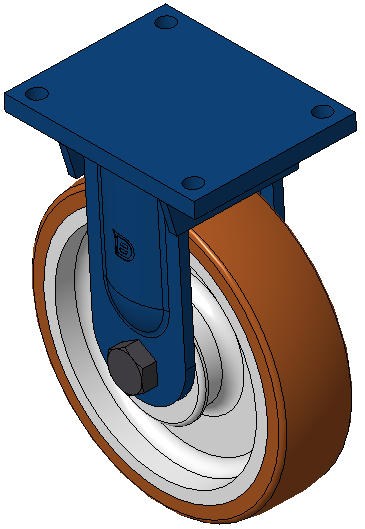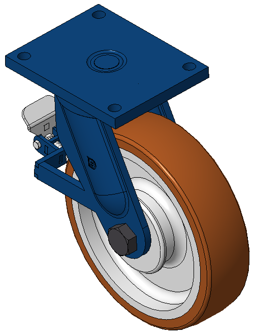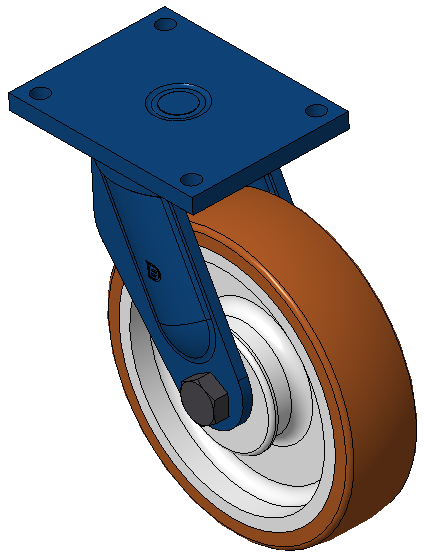 | Bánh xe xoay với khung thép hàn, sơn phủ màu xanh.