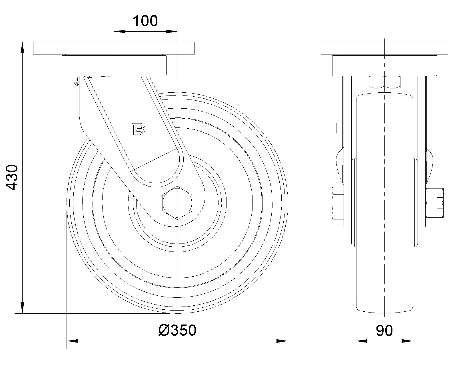 | VQPU Bánh xe (hồ quang nâu) Đường kính bánh xe × Chiều rộng bánh xe 350 x 90mm |