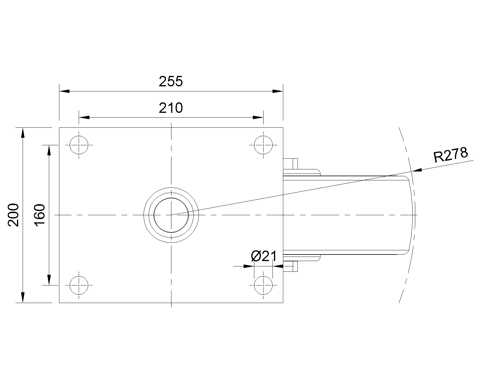 Lắp đế, khoảng cách lỗ 210x160 Lõi bánh xe bằng gang, gai polyurethane chất lượng cao, phay màu đỏ tía Vòng bi bánh xe: vòng bi góc |