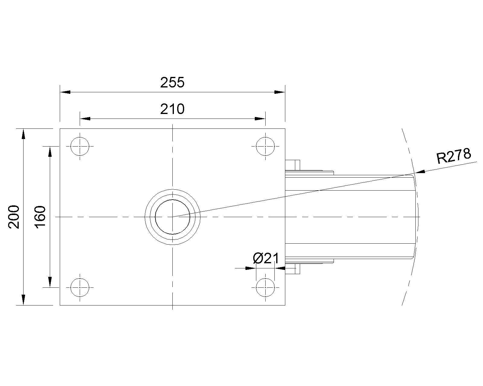 Lắp đế, khoảng cách lỗ 210x160 Lõi bánh xe và gai bánh xe bằng nhựa nhiệt dẻo, màu trắng ngà Vòng bi bánh xe - vòng bi góc |
