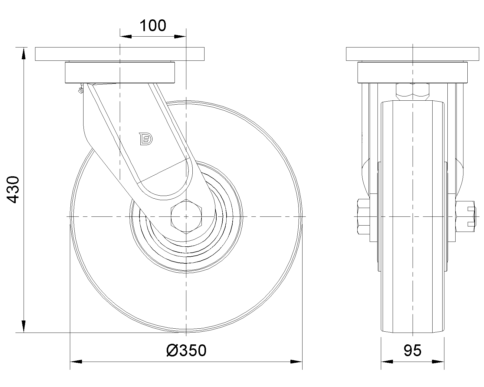 | MC Bánh xe nylon (màu trắng gạo) Đường kính bánh xe × Chiều rộng bánh xe 350 x 95mm |