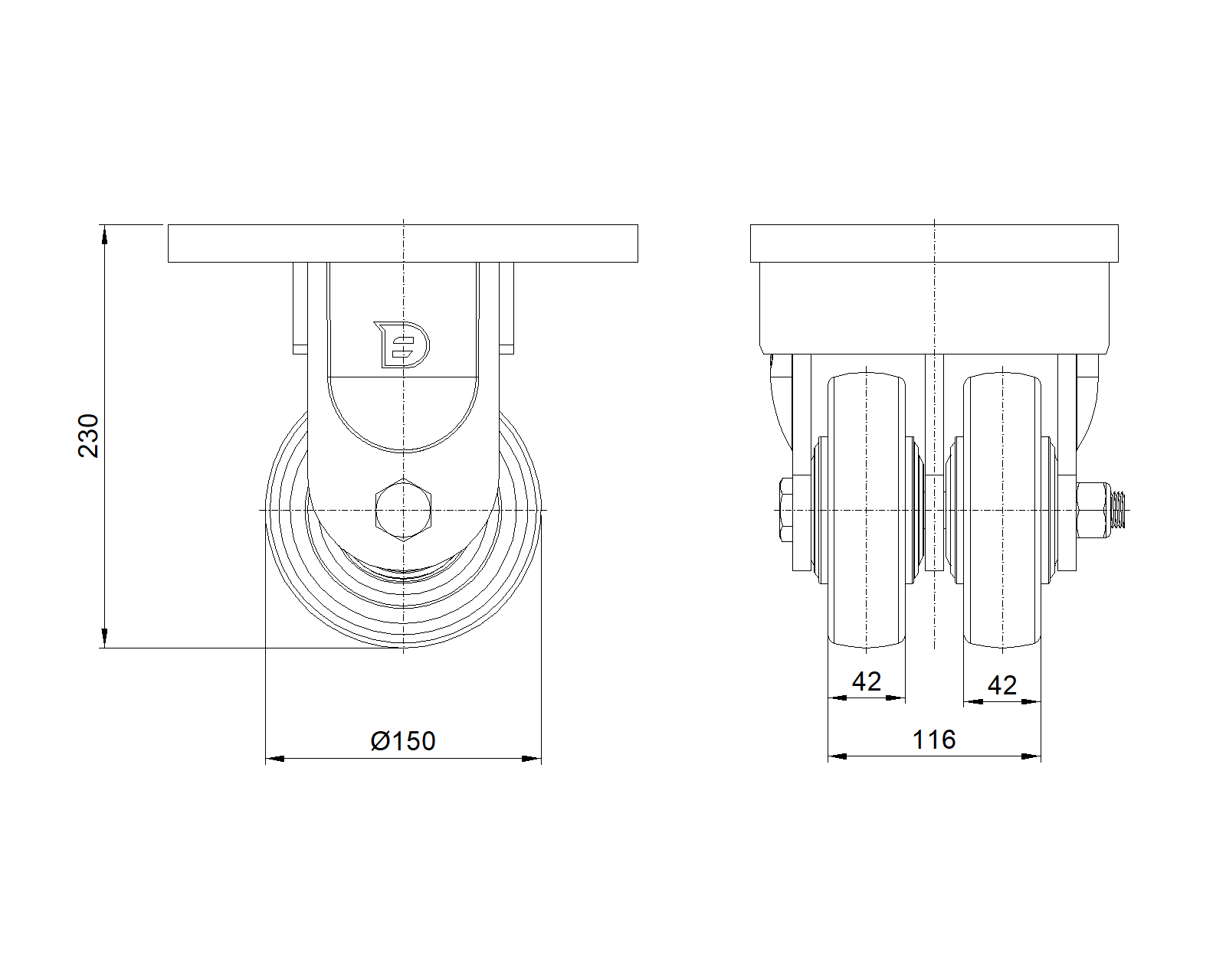 | Bánh xe VXPU (vòng cung đỏ rượu) Đường kính bánh xe × Chiều rộng bánh xe 150 x 42mm |