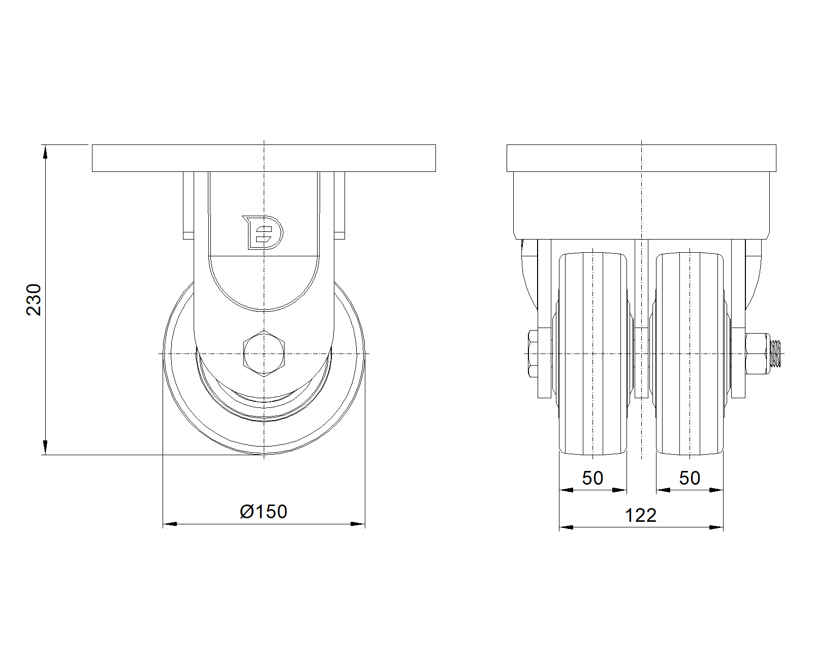 | Bánh xe cố định, khung thép hàn, sơn phủ màu xanh