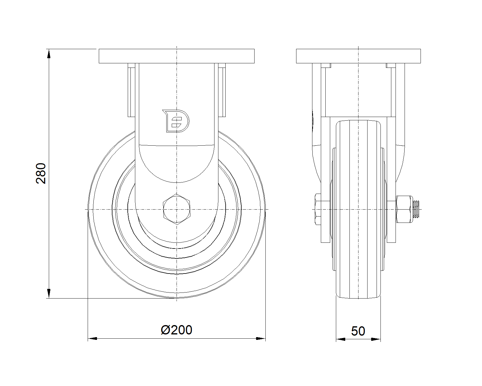 | MC Bánh xe nylon (màu trắng gạo) Đường kính bánh xe × Chiều rộng bánh xe 200 x 50mm |