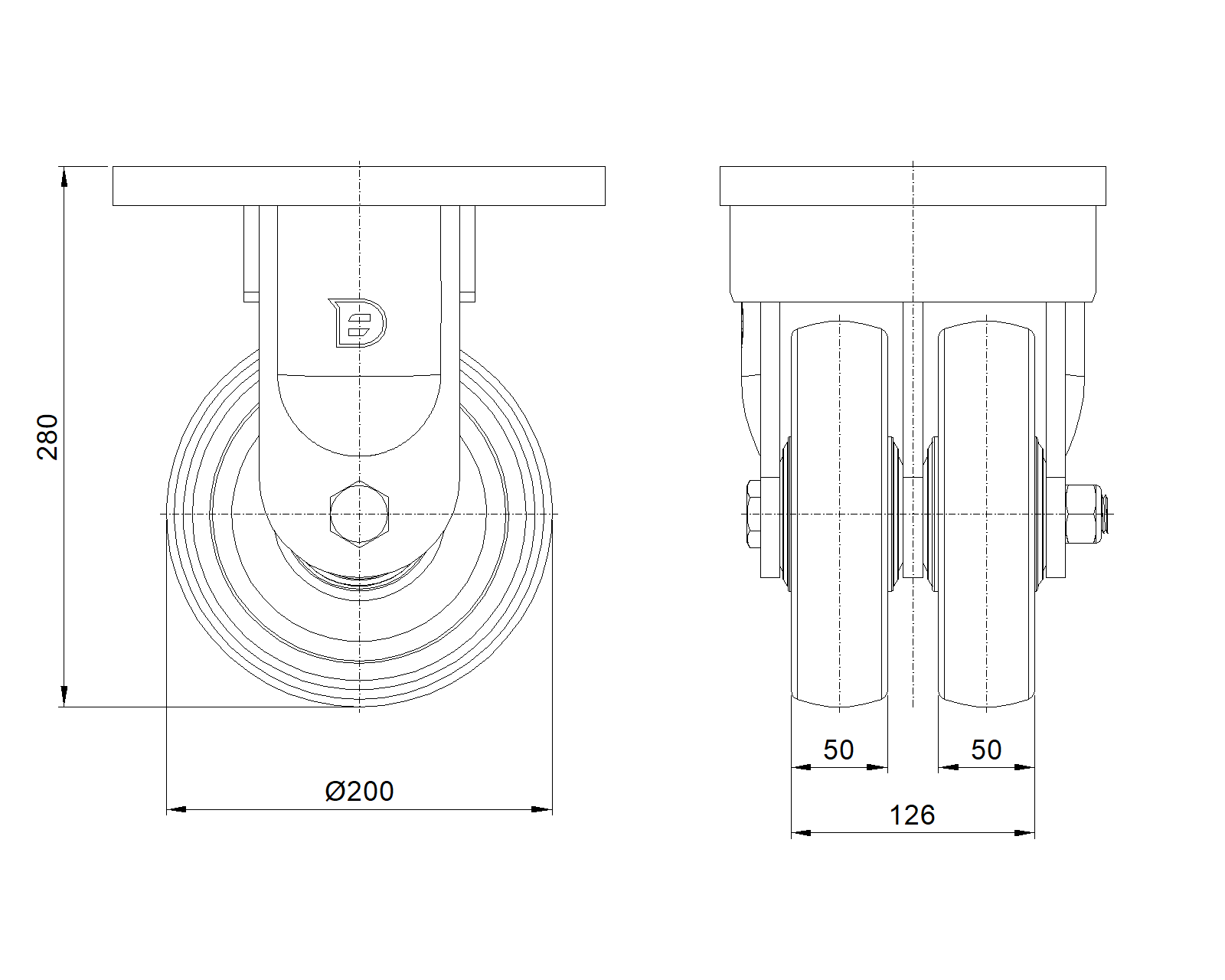 | Bánh xe VQPU (hồ quang nâu) Đường kính bánh xe × Chiều rộng bánh xe 200 x 50mm |