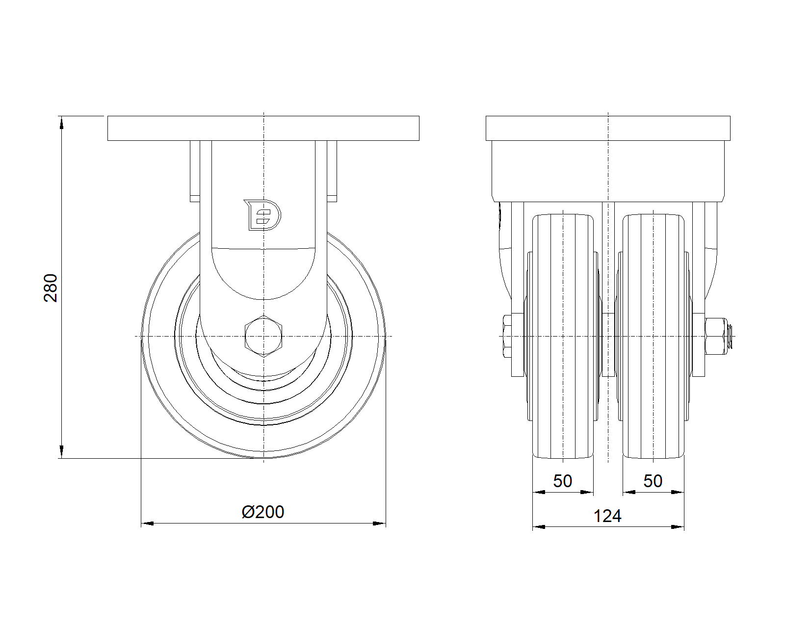 | Bánh xe cố định, khung thép hàn, sơn phủ màu xanh