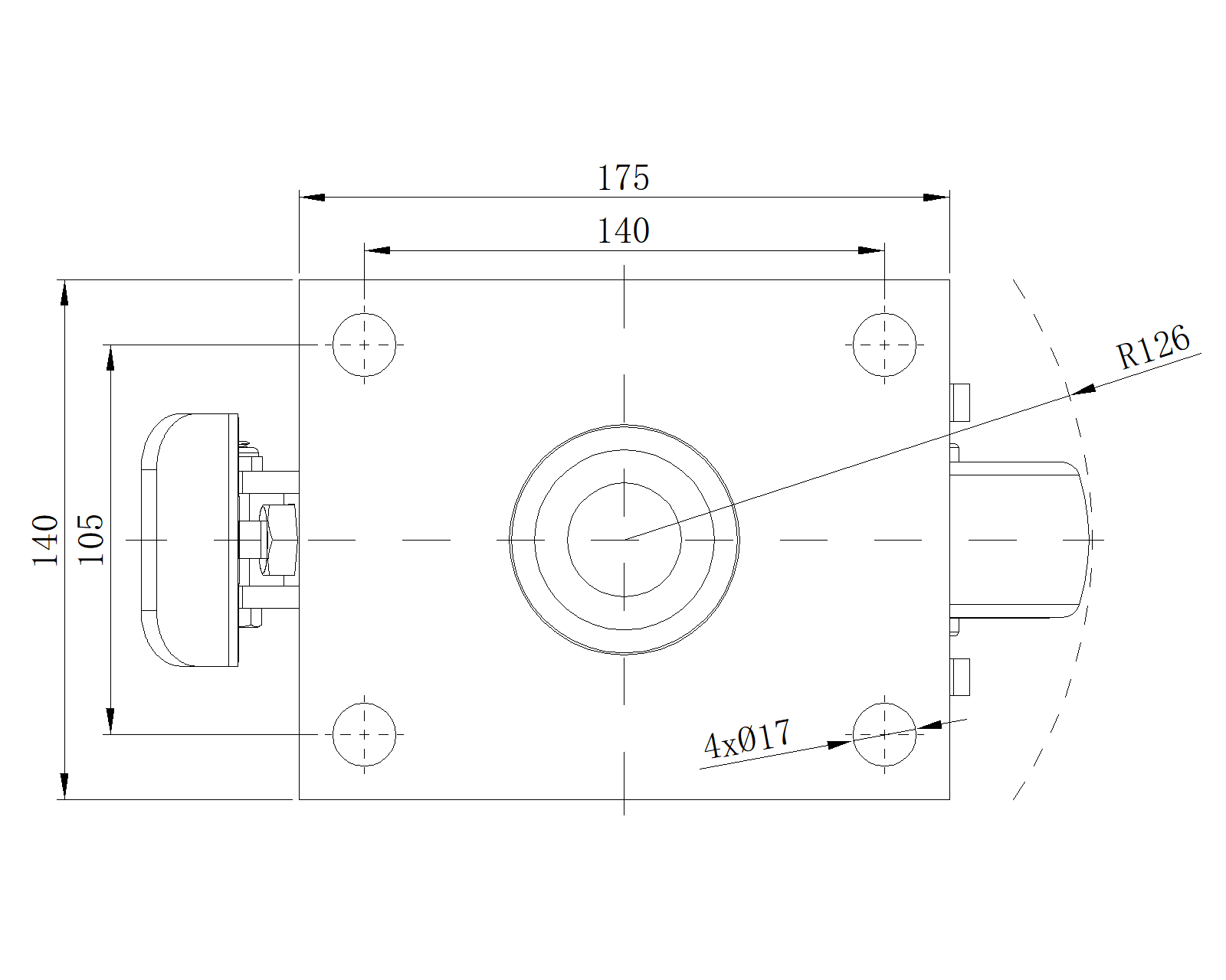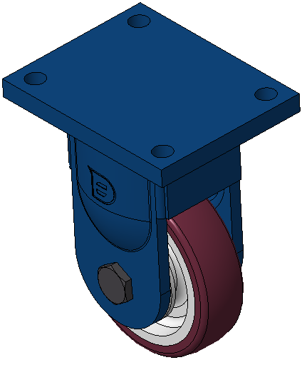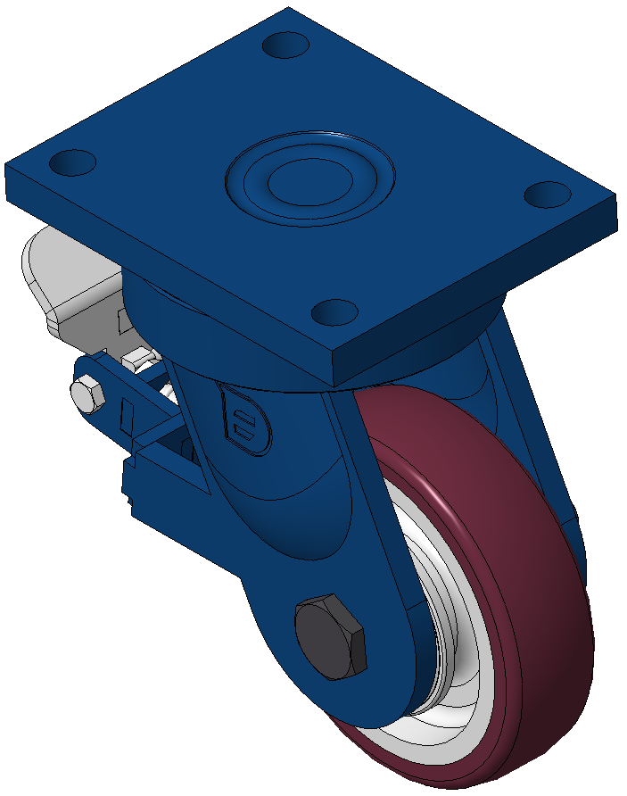 Lắp đế, khoảng cách lỗ 140x105mm Lõi bánh xe bằng gang, gai polyurethane chất lượng cao, phay màu đỏ tía Vòng bi bánh xe – vòng bi góc |