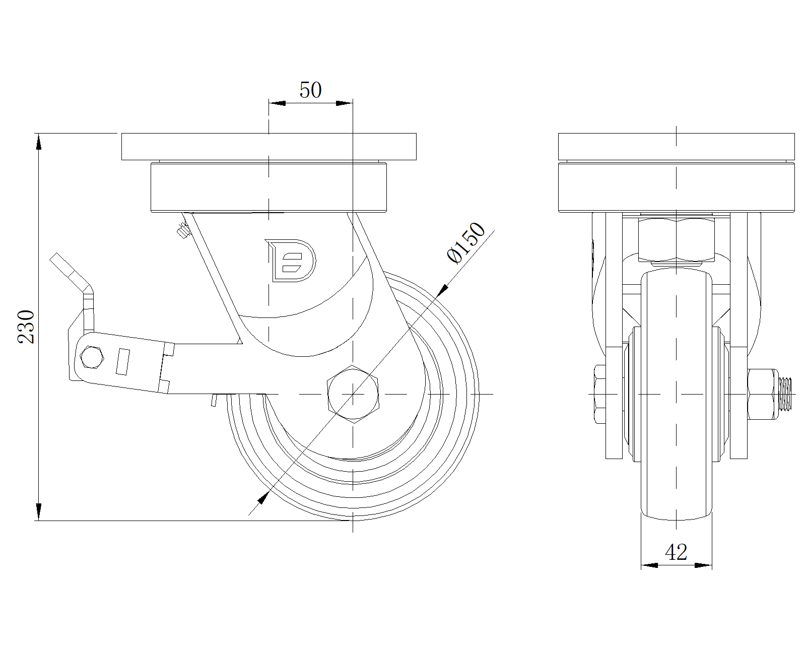 | Bánh xe VXPU (vòng cung đỏ rượu) Đường kính bánh xe × Chiều rộng bánh xe 150 x 42mm |