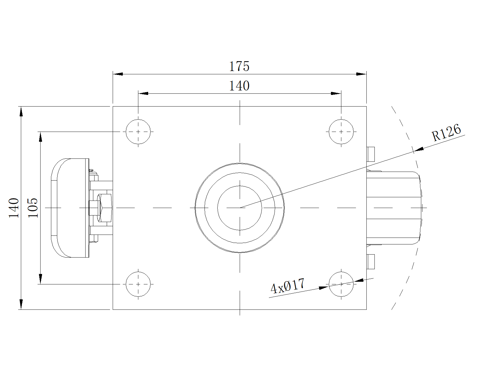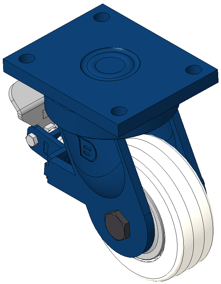 Lắp đế, khoảng cách lỗ 140x105mm Lõi gang, gai polyurethane chất lượng cao, hoàn thiện màu trắng ngà Vòng bi bánh xe—vòng bi cầu chính xác |