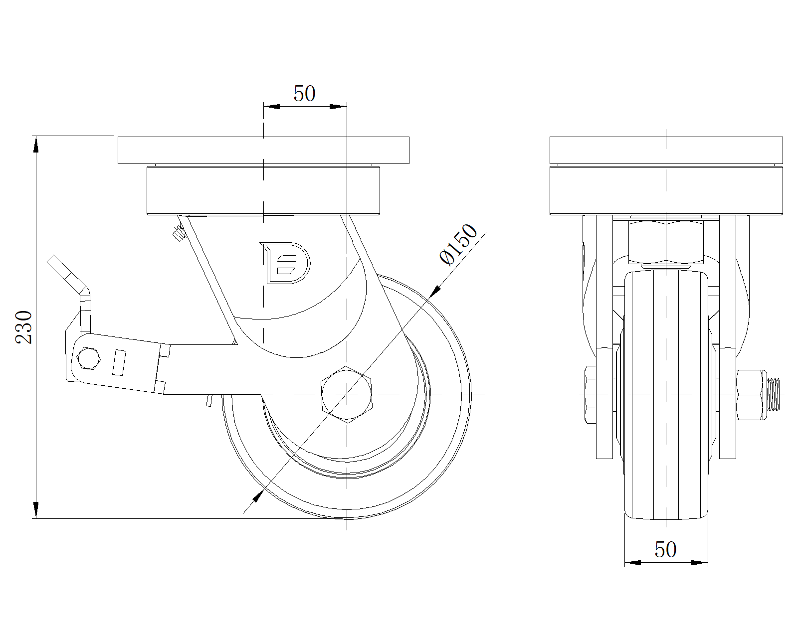| MC Bánh xe nylon (màu trắng gạo) Đường kính bánh xe × Chiều rộng bánh xe 150 x 50mm |