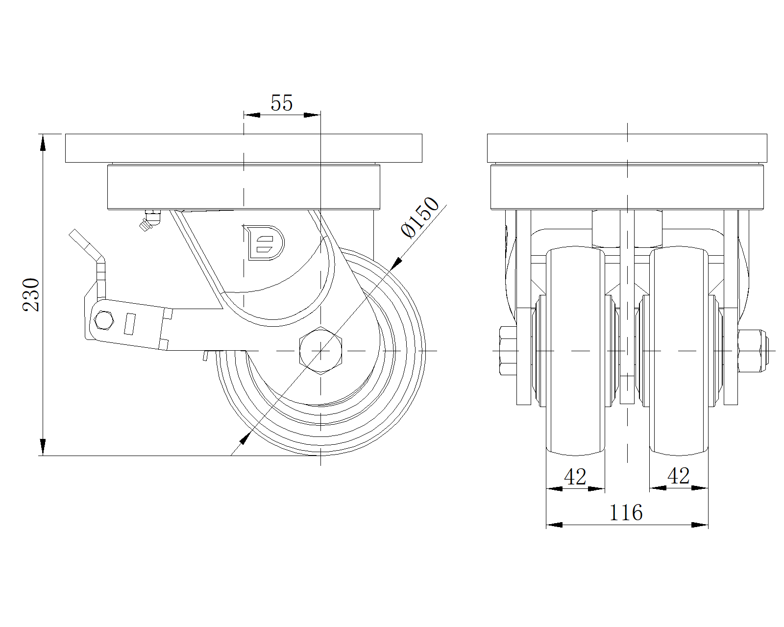 | Bánh xe VXPU (vòng cung đỏ rượu) Đường kính bánh xe × Chiều rộng bánh xe 150 x 42mm |