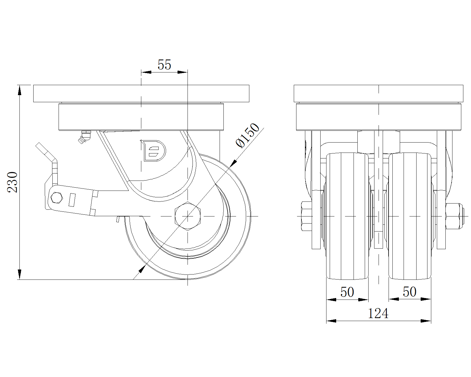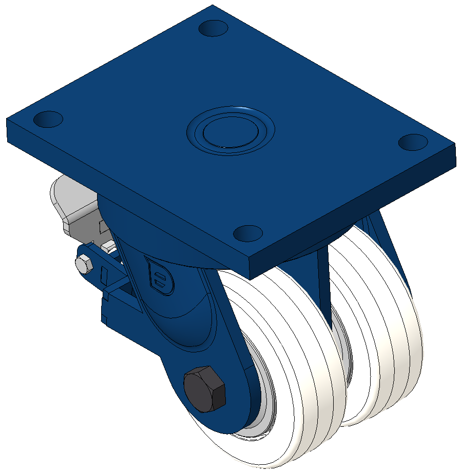 | Bánh xe hai dãy phanh trực tiếp, khung thép hàn, sơn phủ màu xanh