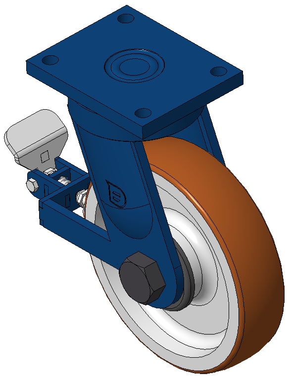Lắp đế, khoảng cách lỗ 140x105mm Lõi bánh xe bằng gang với gai polyurethane chất lượng cao, phay màu nâu Vòng bi bánh xe - vòng bi góc |
