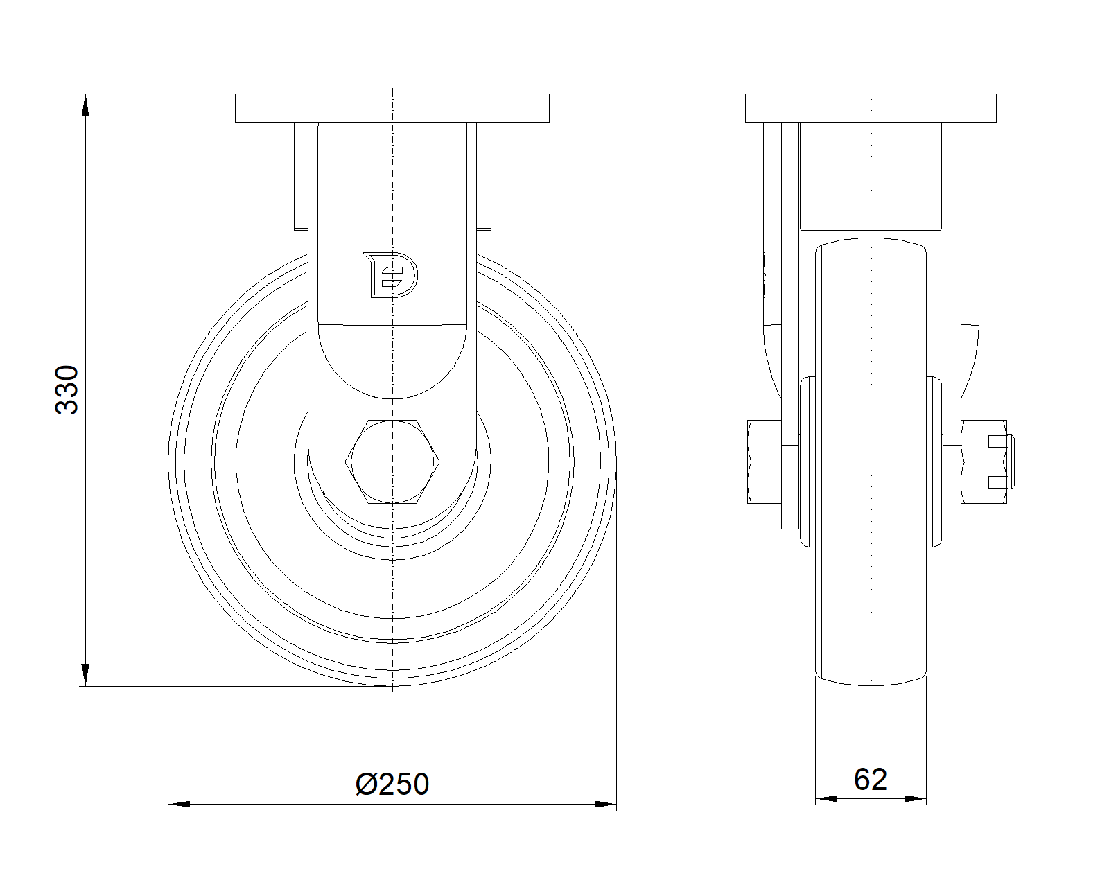 | Bánh xe VQPU (hồ quang nâu) Đường kính bánh xe × Chiều rộng bánh xe 250 x 62mm |