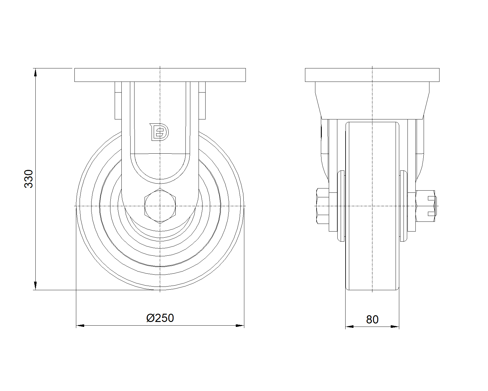 | VQPU Bánh xe (nâu phẳng) Đường kính bánh xe × Chiều rộng bánh xe 250 x 80mm |