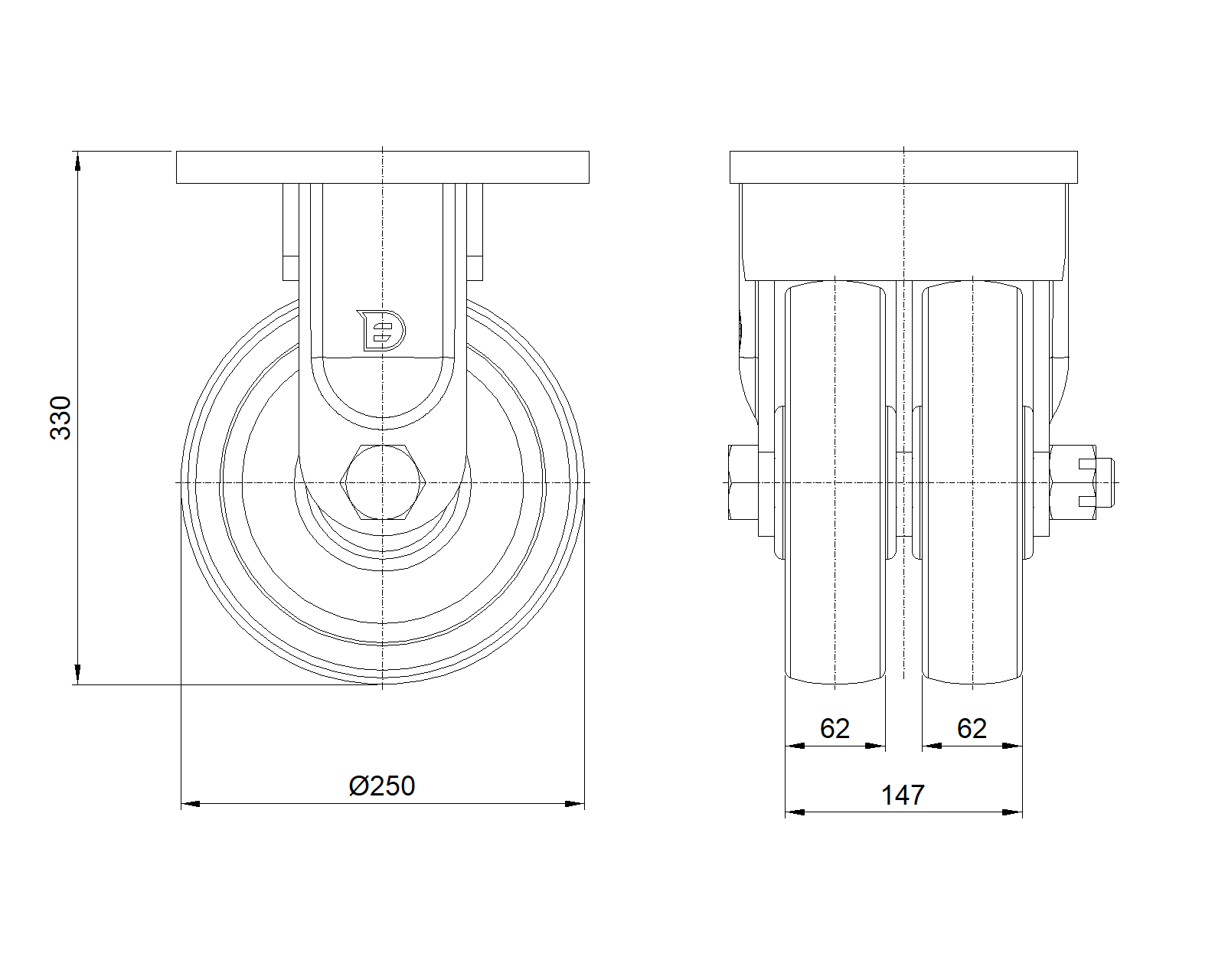 | Bánh xe VXPU (vòng cung đỏ rượu) Đường kính bánh xe × Chiều rộng bánh xe 250 x 62mm |