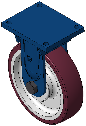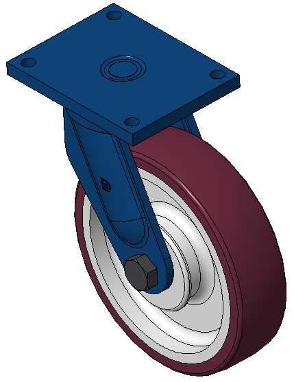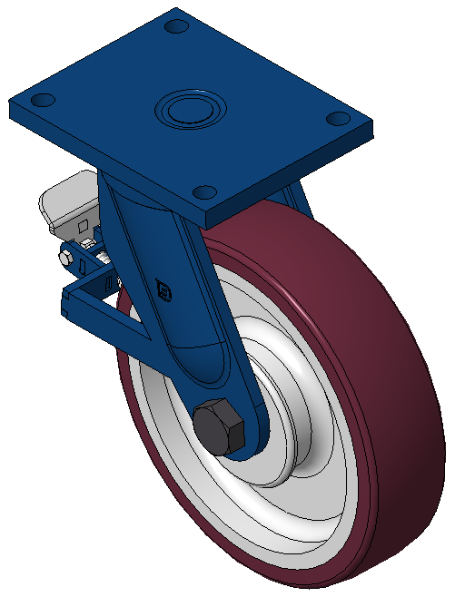 | Bánh xe cố định với khung thép hàn, sơn phủ màu xanh Lắp đế, khoảng cách lỗ 210x160 Lõi bánh xe bằng gang với gai polyurethane chất lượng cao, phay màu đỏ tía Vòng bi bánh xe - vòng bi góc |   | |||||